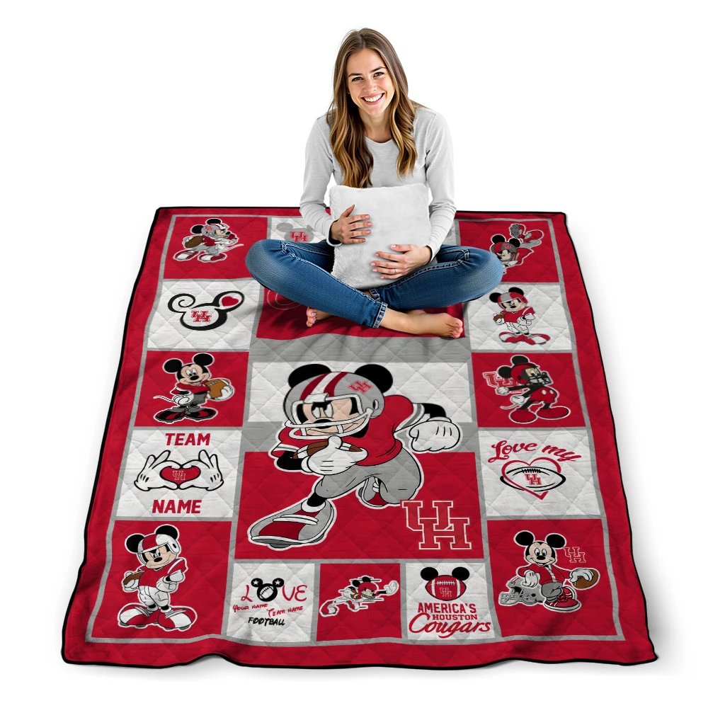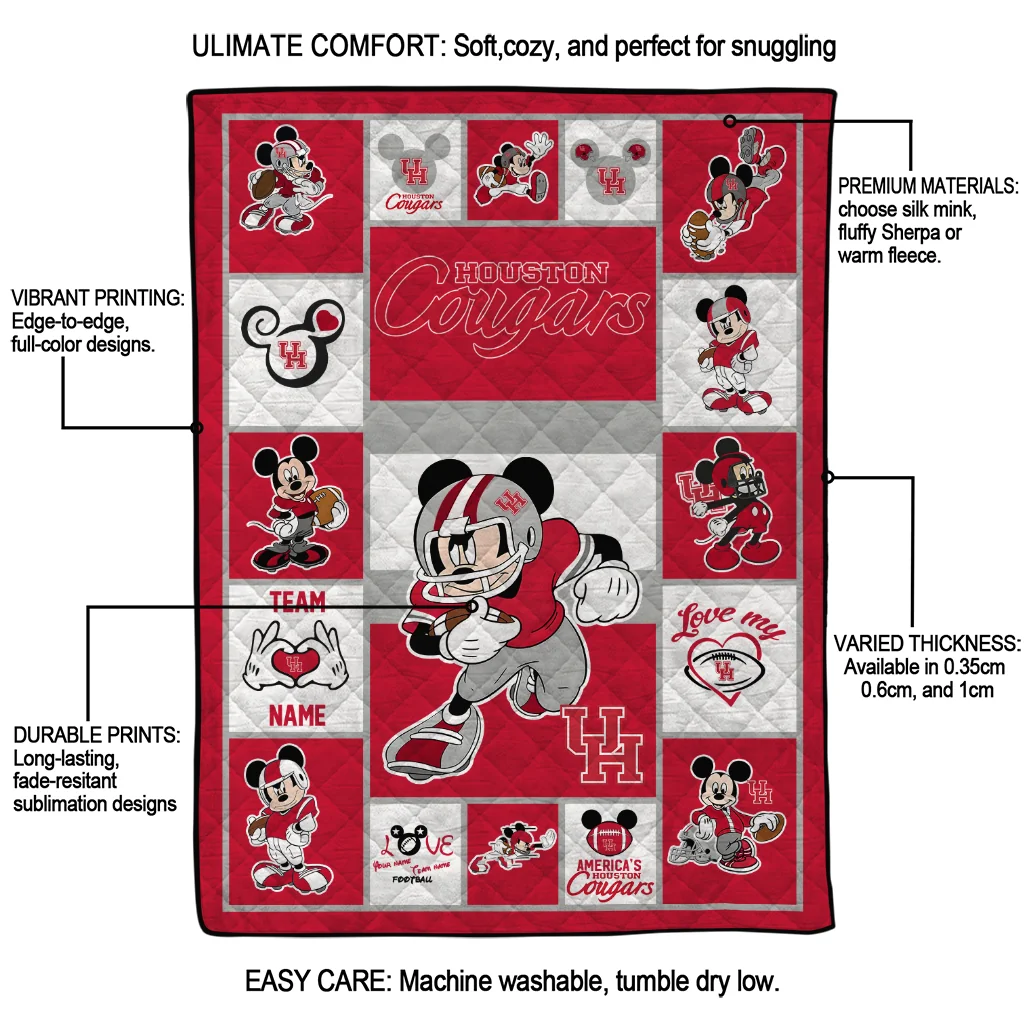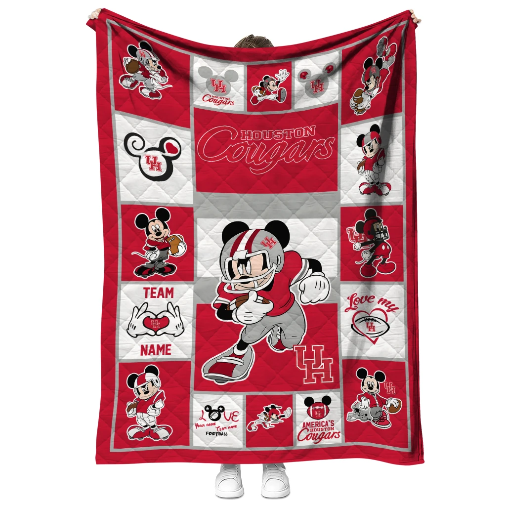 Custom Houston Cougars Mickey Crimson Red White Quilt Blanket