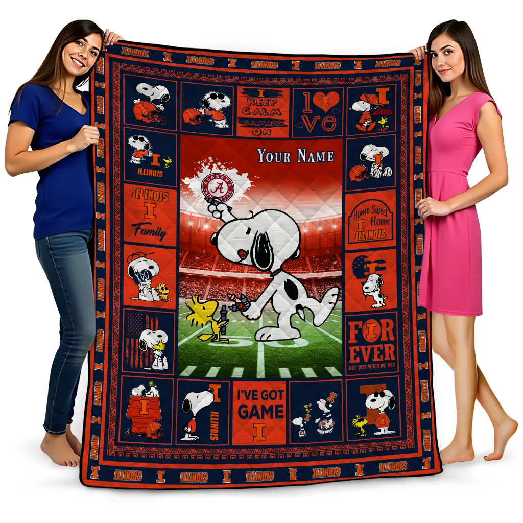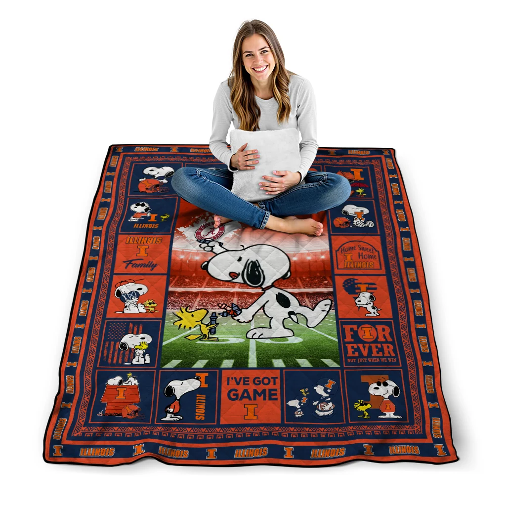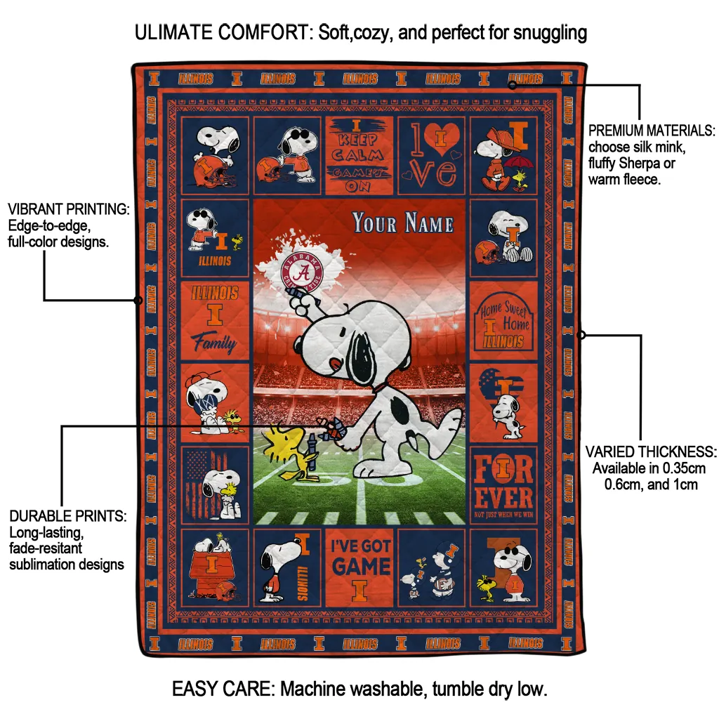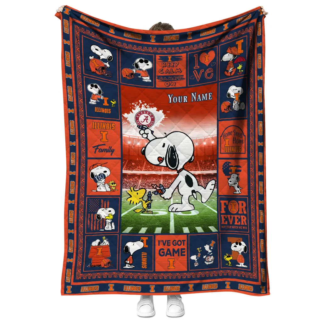 Custom Illinois Fighting Illini Snoopy Coach Blue Quilt Blanket