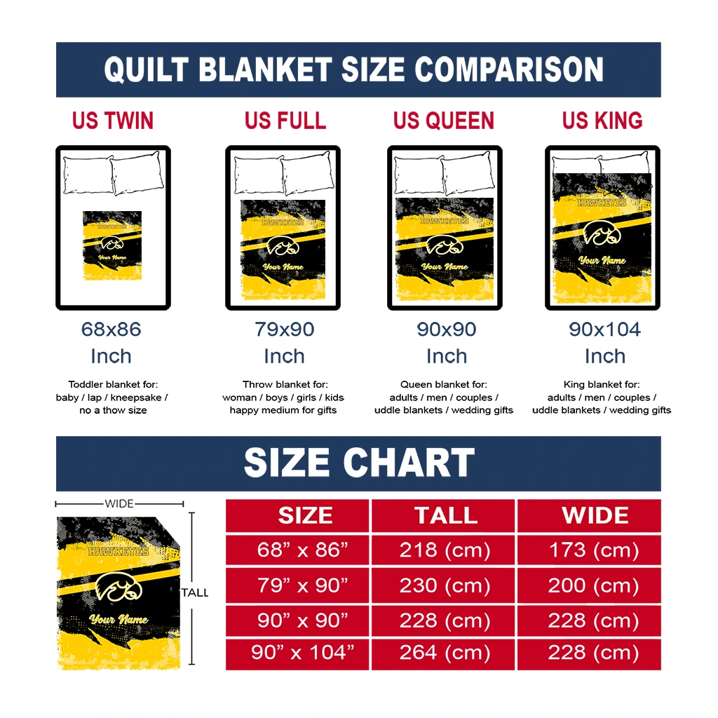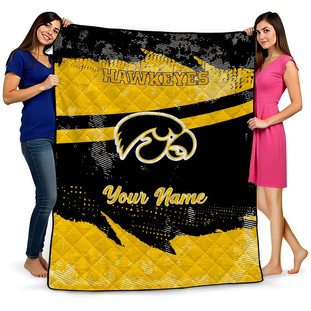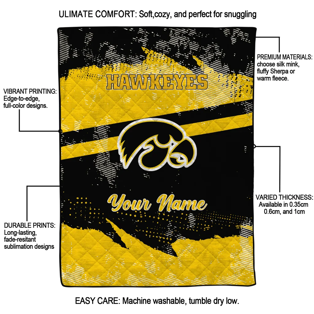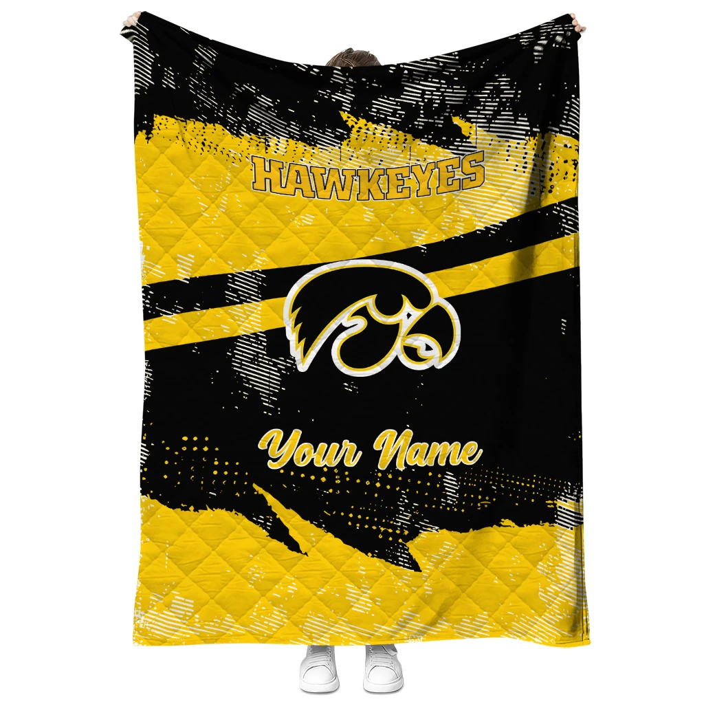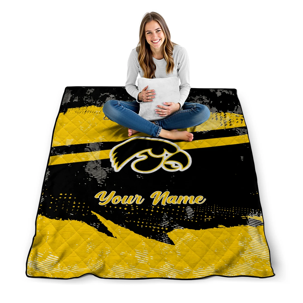 Wrap yourself in warmth and pride with the Custom Iowa Hawkeyes Brushstroke Layers Black Quilt Blanket from the Iowa Hawkeyes Blankets collection at Yes That Blanket. Made from 100% premium quilting-weight polyester blended with a touch of microfiber, this quilt offers a smooth, soft finish you’ll love. Choose between two quilting styles—Stipple or Diagonal—and enjoy the comfort of a cotton-filled layer inside that adds extra coziness for every season. The border is available in classic black or white, giving your design a clean, timeless edge.