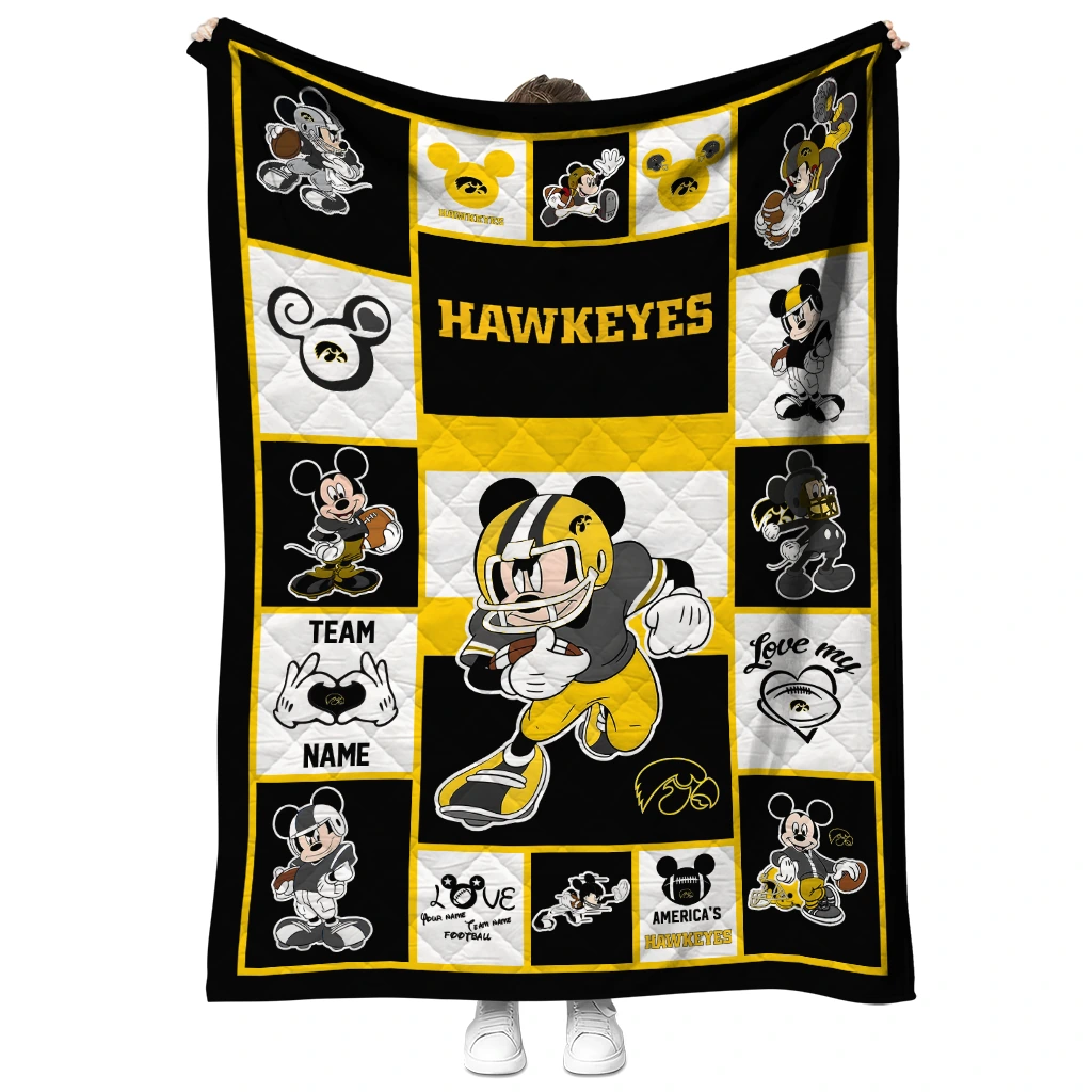 Wrap yourself in warmth and pride with the Custom Iowa Hawkeyes Mickey Crimson Black White Quilt Blanket from the Iowa Hawkeyes Blankets collection at Yes That Blanket. Made from 100% premium quilting-weight polyester blended with a touch of microfiber, this quilt offers a smooth, soft finish you’ll love. Choose between two quilting styles—Stipple or Diagonal—and enjoy the comfort of a cotton-filled layer inside that adds extra coziness for every season. The border is available in classic black or white, giving your design a clean, timeless edge.