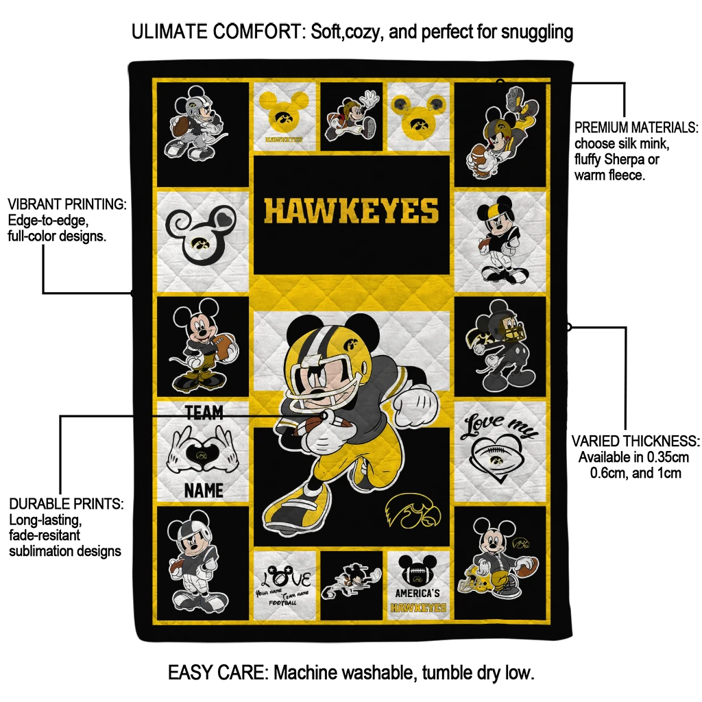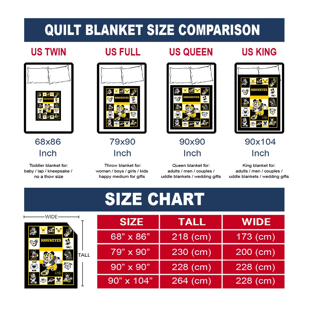 The Custom Iowa Hawkeyes Mickey Crimson Black White Quilt Blanket is more than a blanket—it’s everyday comfort, thoughtfully made. Crafted from premium quilting fabric with a soft microfiber touch, it offers a smooth hand-feel and lasting coziness. Layered quilting with a cotton-filled core provides adaptable warmth across seasons while maintaining a clean, tailored look on your bed or sofa.