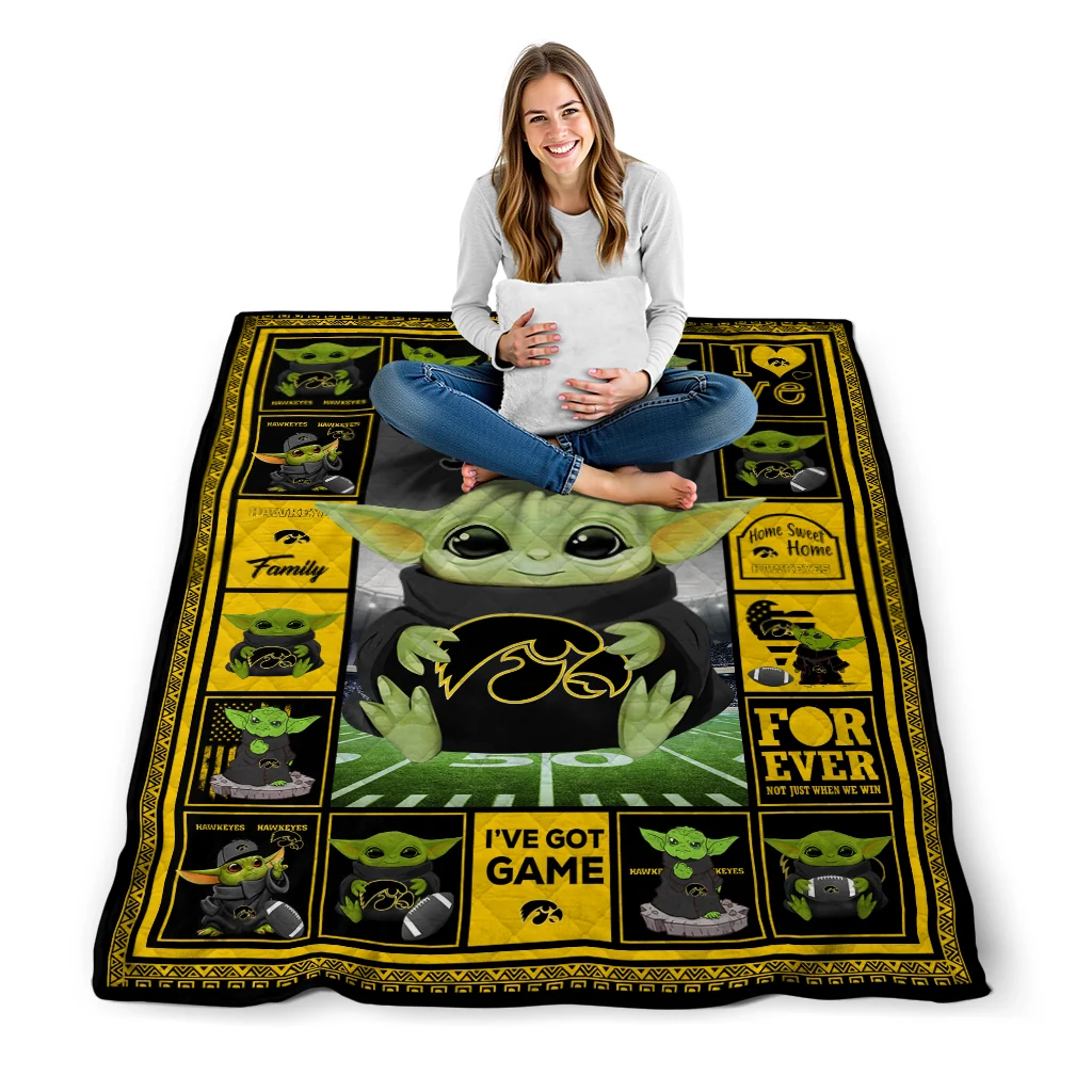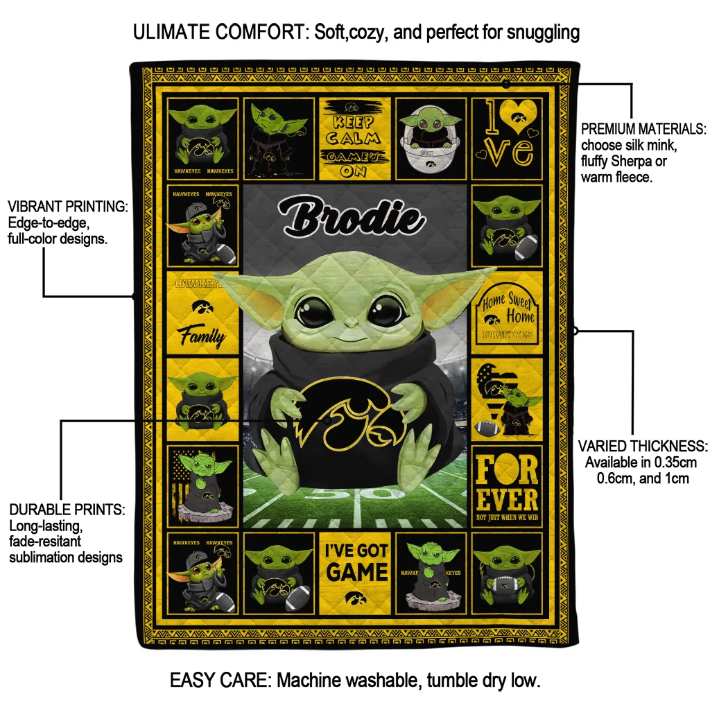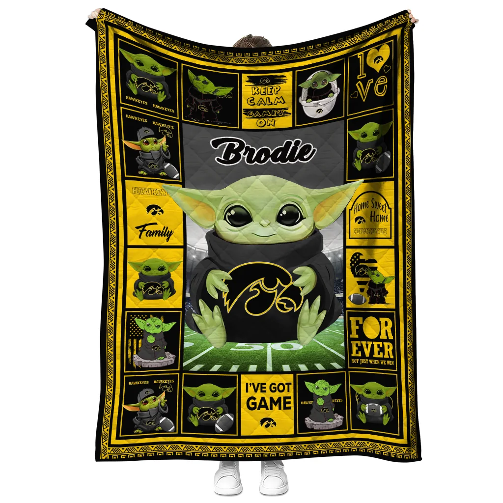 Custom Iowa Hawkeyes Yody Baby Pattern Black Quilt Blanket