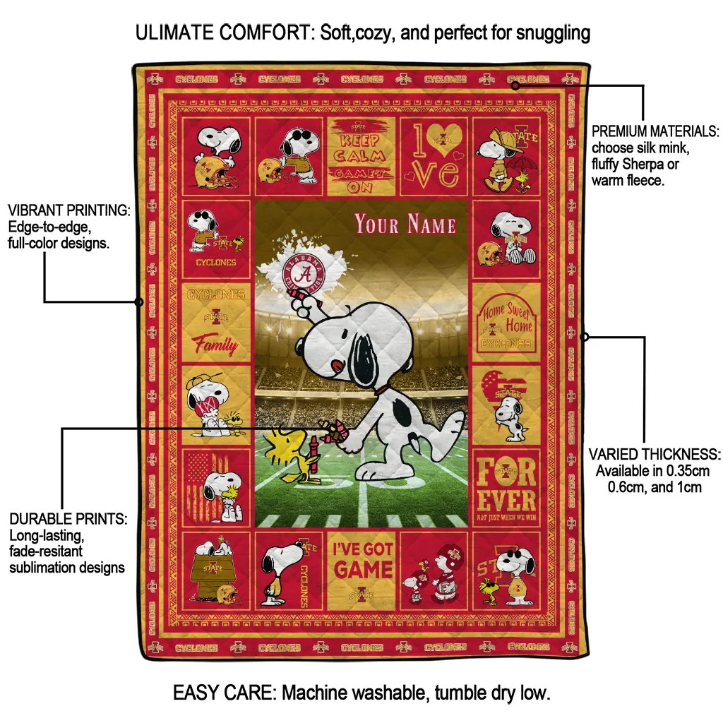 The Custom Iowa State Cyclones Snoopy Coach Red Quilt Blanket is more than a blanket—it’s everyday comfort, thoughtfully made. Crafted from premium quilting fabric with a soft microfiber touch, it offers a smooth hand-feel and lasting coziness. Layered quilting with a cotton-filled core provides adaptable warmth across seasons while maintaining a clean, tailored look on your bed or sofa.