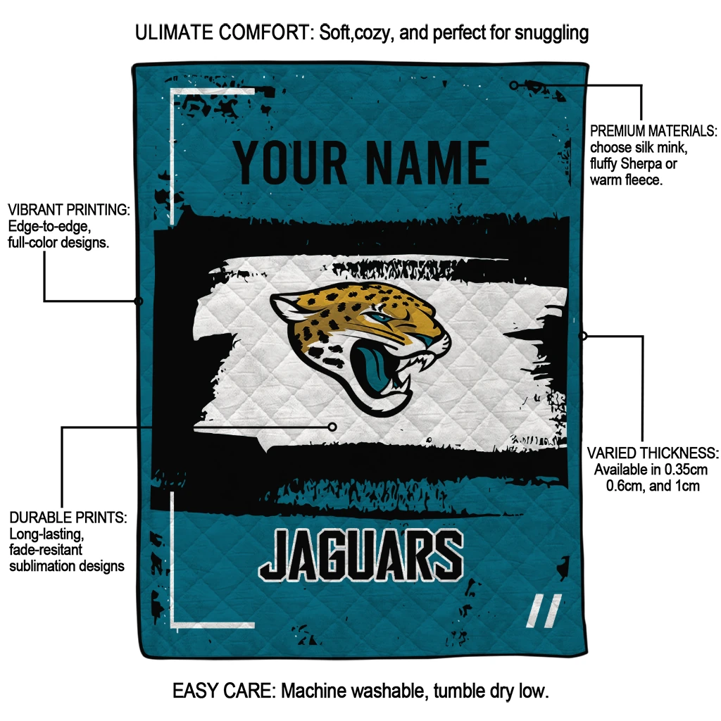 Custom Jacksonville Jaguars Grunge Patch Teal White Quilt Blanket