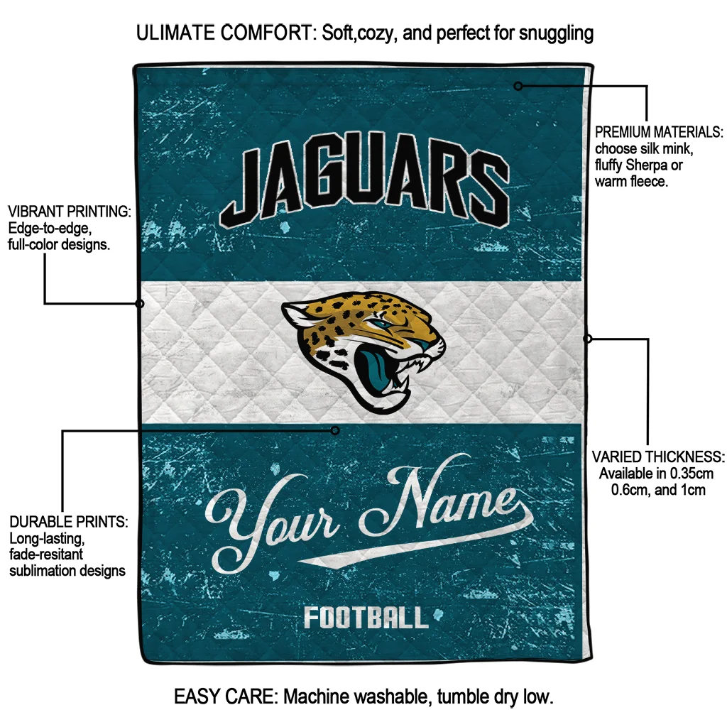 The Custom Jacksonville Jaguars Hibiscus Burst Teal White Quilt Blanket is more than a blanket—it’s everyday comfort, thoughtfully made. Crafted from premium quilting fabric with a soft microfiber touch, it offers a smooth hand-feel and lasting coziness. Layered quilting with a cotton-filled core provides adaptable warmth across seasons while maintaining a clean, tailored look on your bed or sofa.