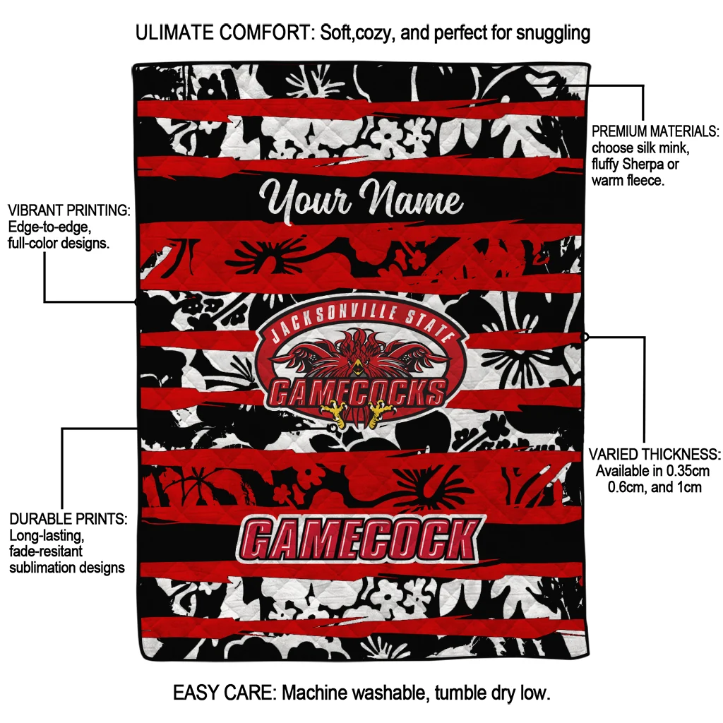 Custom Jacksonville State Gamecocks Layered Florals Red White Quilt Blanket