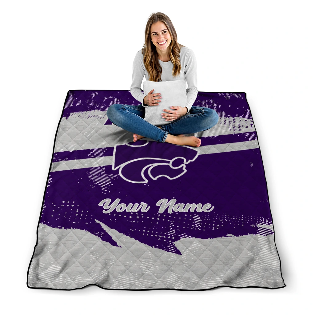 Custom Kansas State Wildcats Brushstroke Layers Purple Quilt Blanket