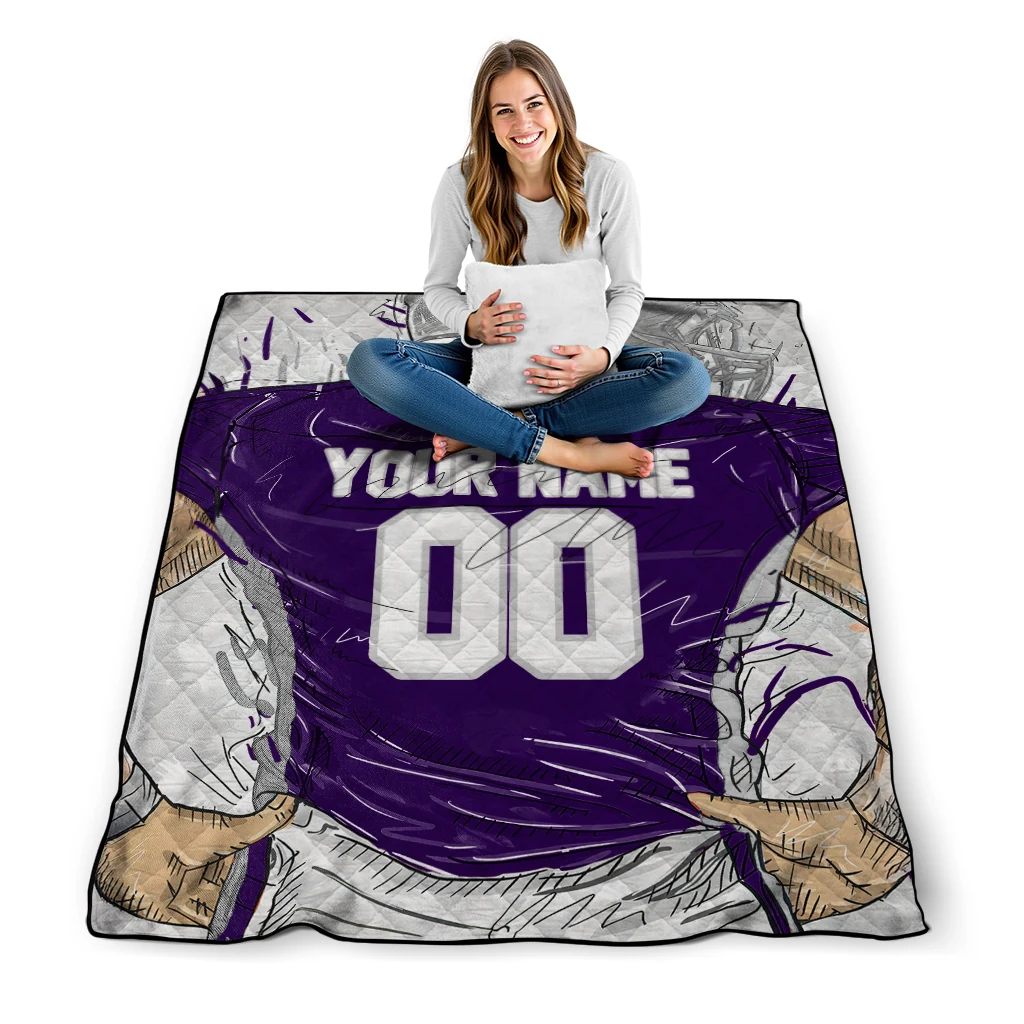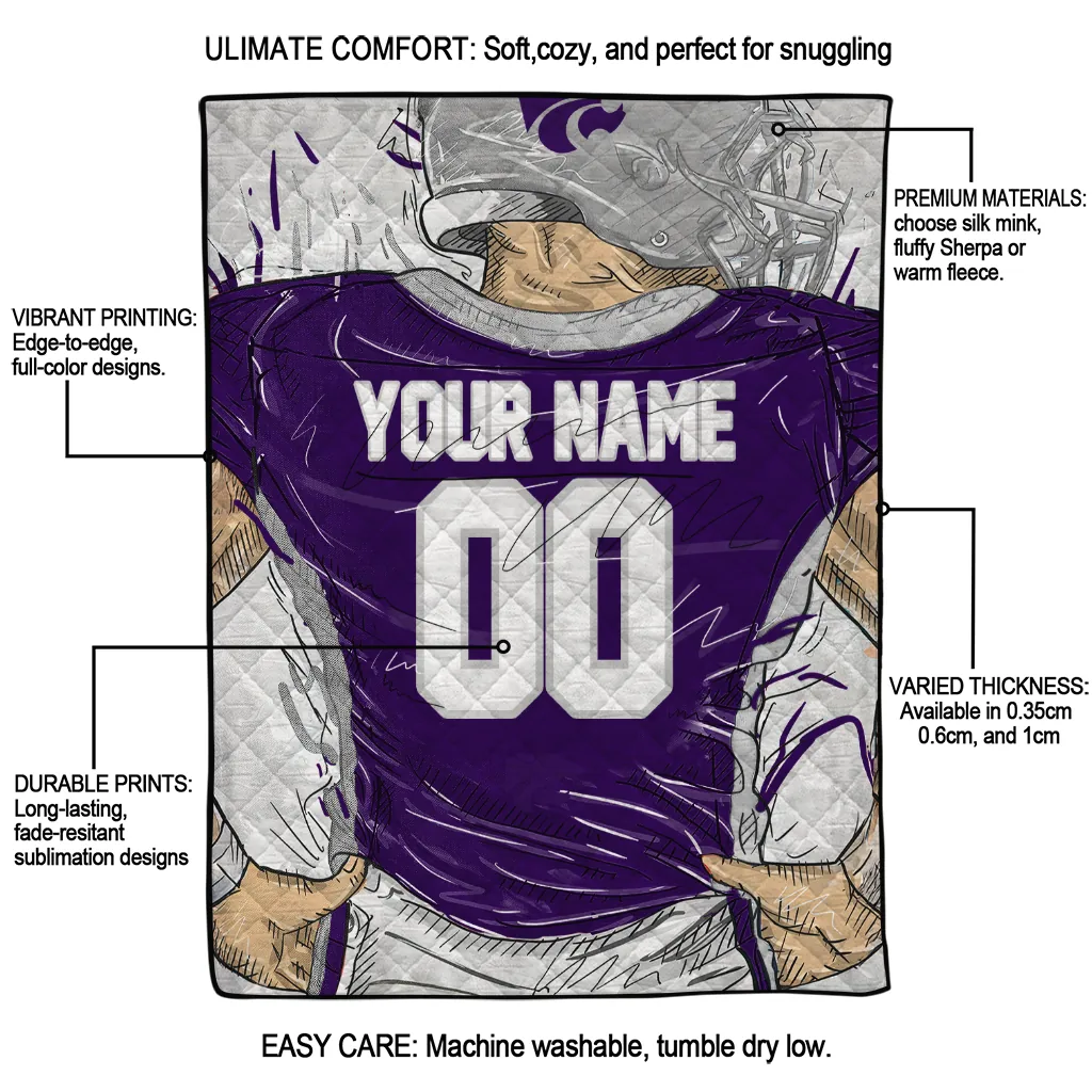 Custom Kansas State Wildcats Player Sketch Purple Gray Quilt Blanket
