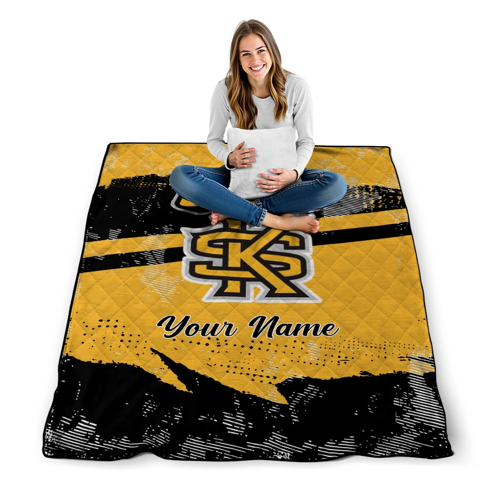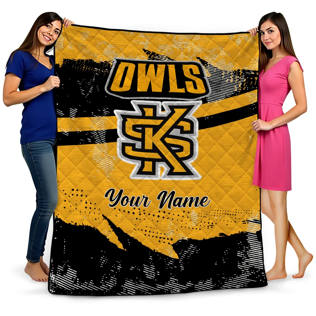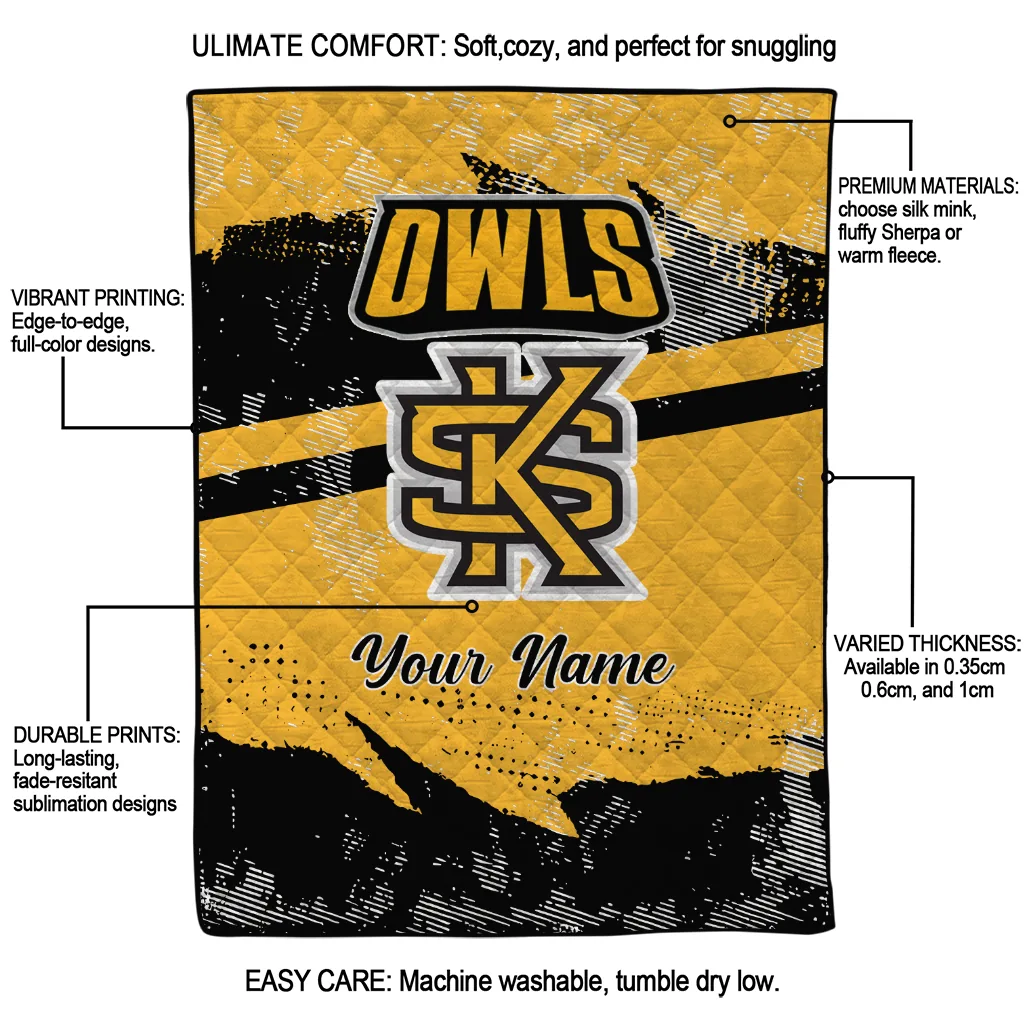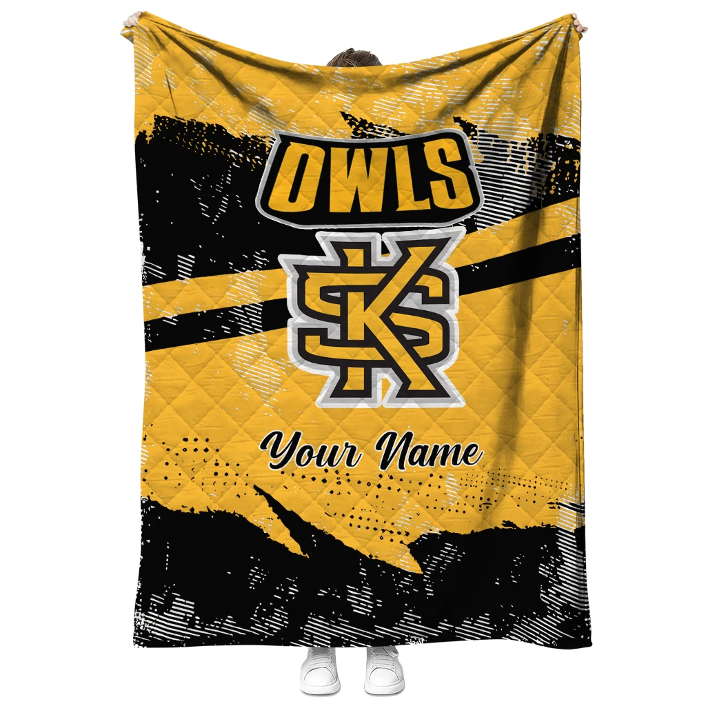 Custom Kennesaw State Owls Brushstroke Layers Gold Quilt Blanket