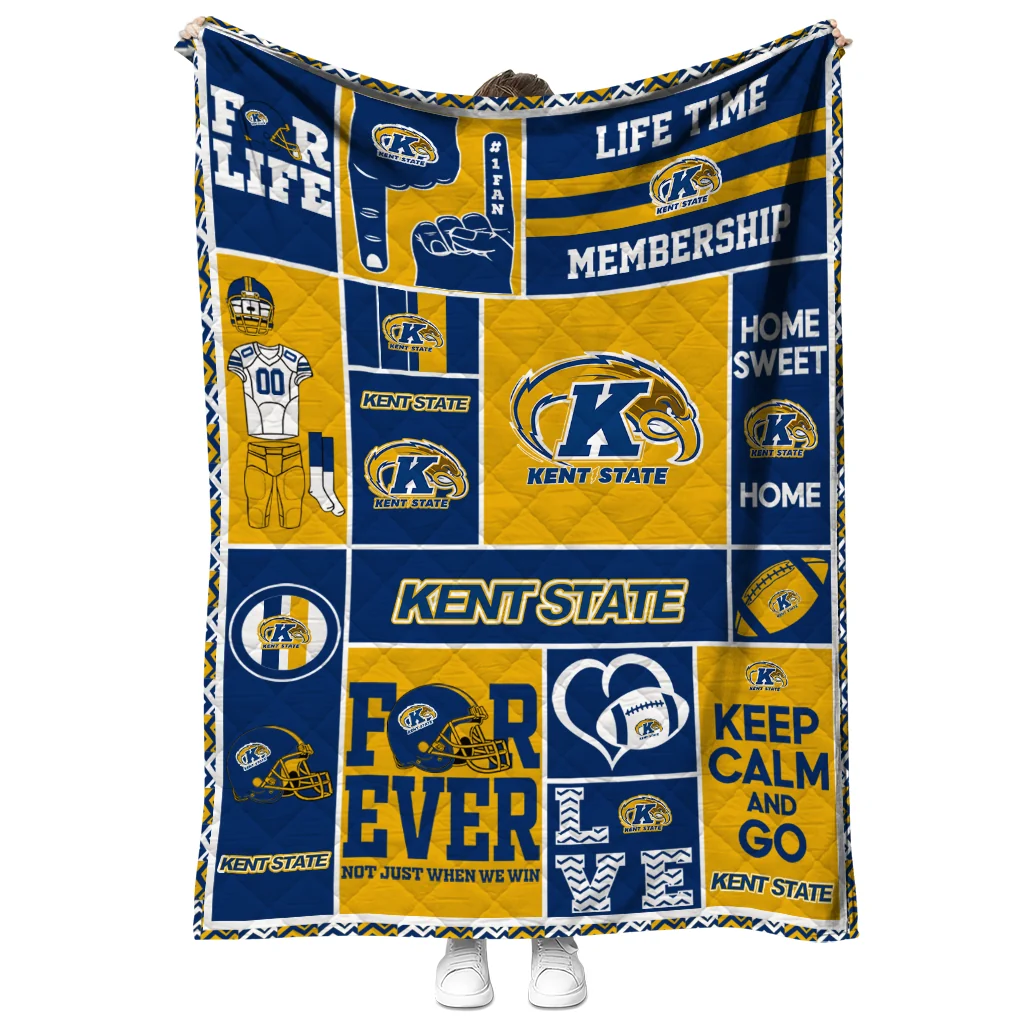 Custom Kent State Golden Flashes Helmet Passion Navy Blue Quilt Blanket