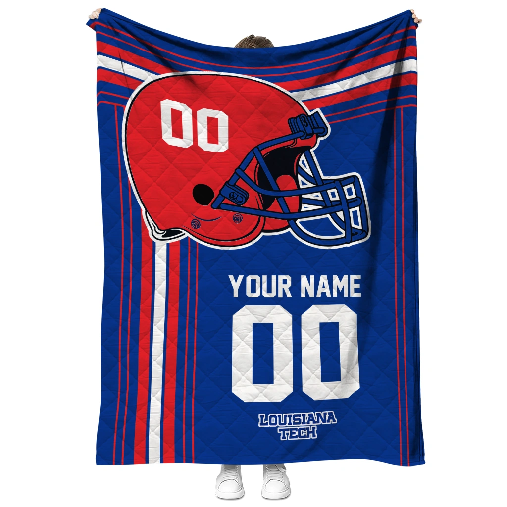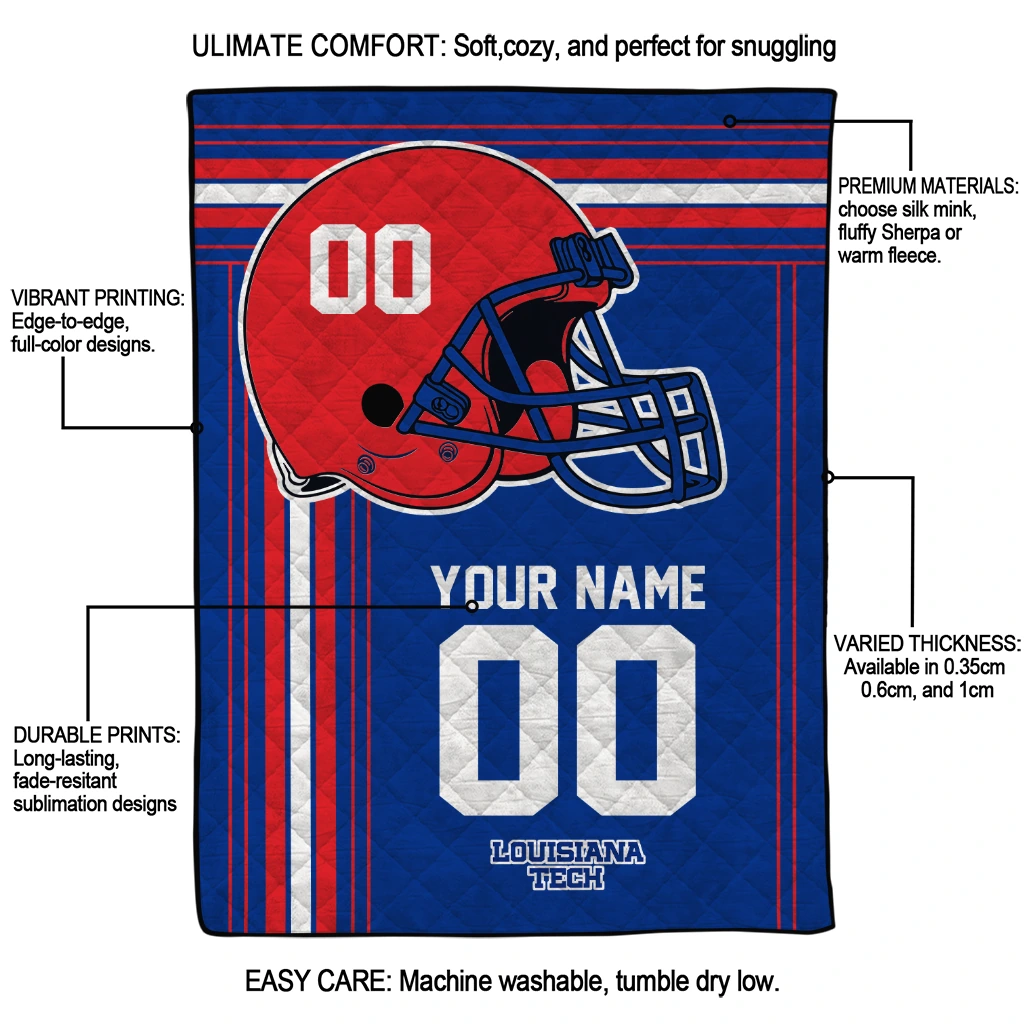 The Custom LA Tech Helmet Theme Blue Quilt Blanket is more than a blanket—it’s everyday comfort, thoughtfully made. Crafted from premium quilting fabric with a soft microfiber touch, it offers a smooth hand-feel and lasting coziness. Layered quilting with a cotton-filled core provides adaptable warmth across seasons while maintaining a clean, tailored look on your bed or sofa.