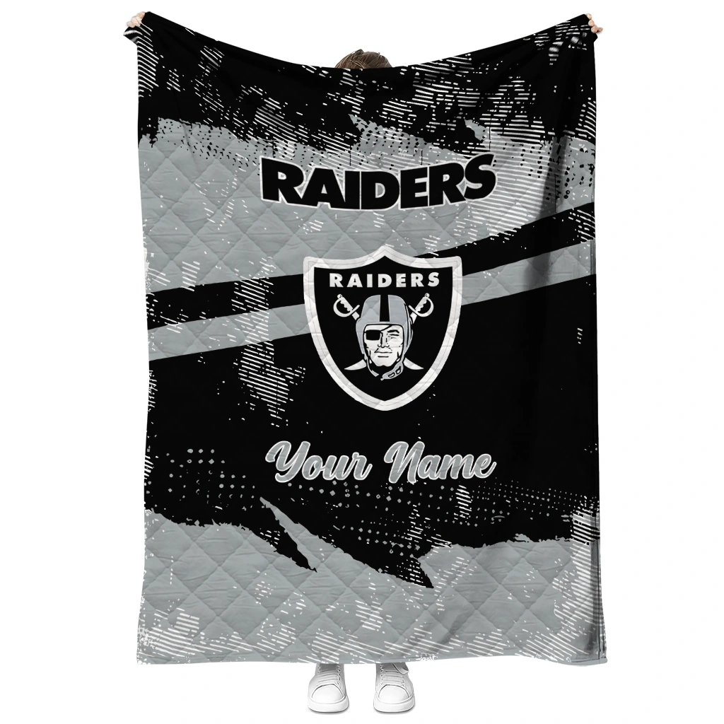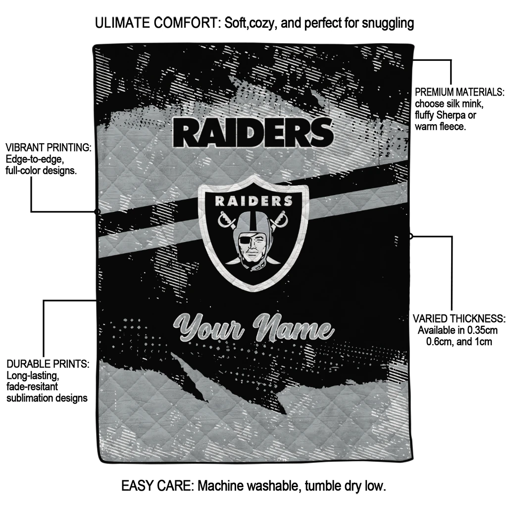 Custom Las Vegas Raiders Brushstroke Layers Black Quilt Blanket