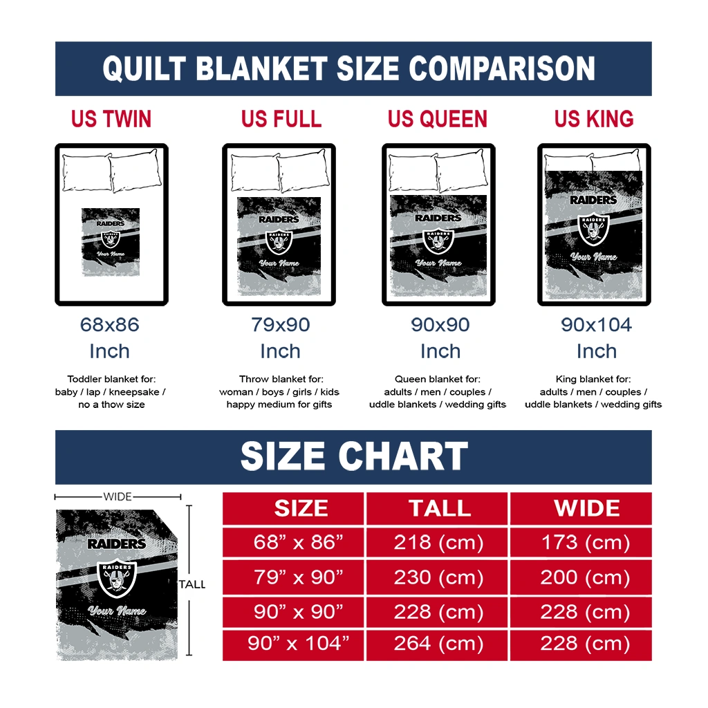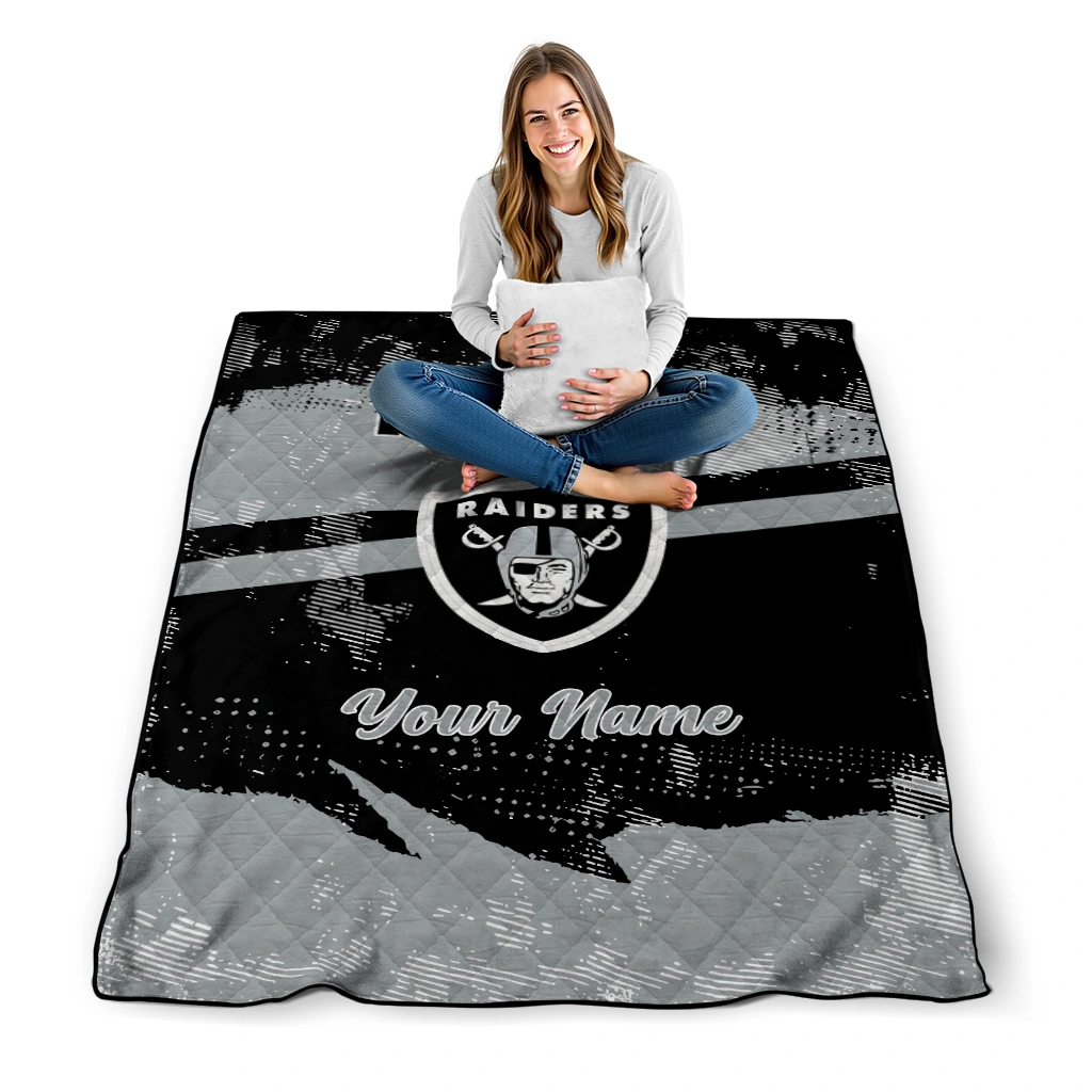 The Custom Las Vegas Raiders Brushstroke Layers Black Quilt Blanket is more than a blanket—it’s everyday comfort, thoughtfully made. Crafted from premium quilting fabric with a soft microfiber touch, it offers a smooth hand-feel and lasting coziness. Layered quilting with a cotton-filled core provides adaptable warmth across seasons while maintaining a clean, tailored look on your bed or sofa.
