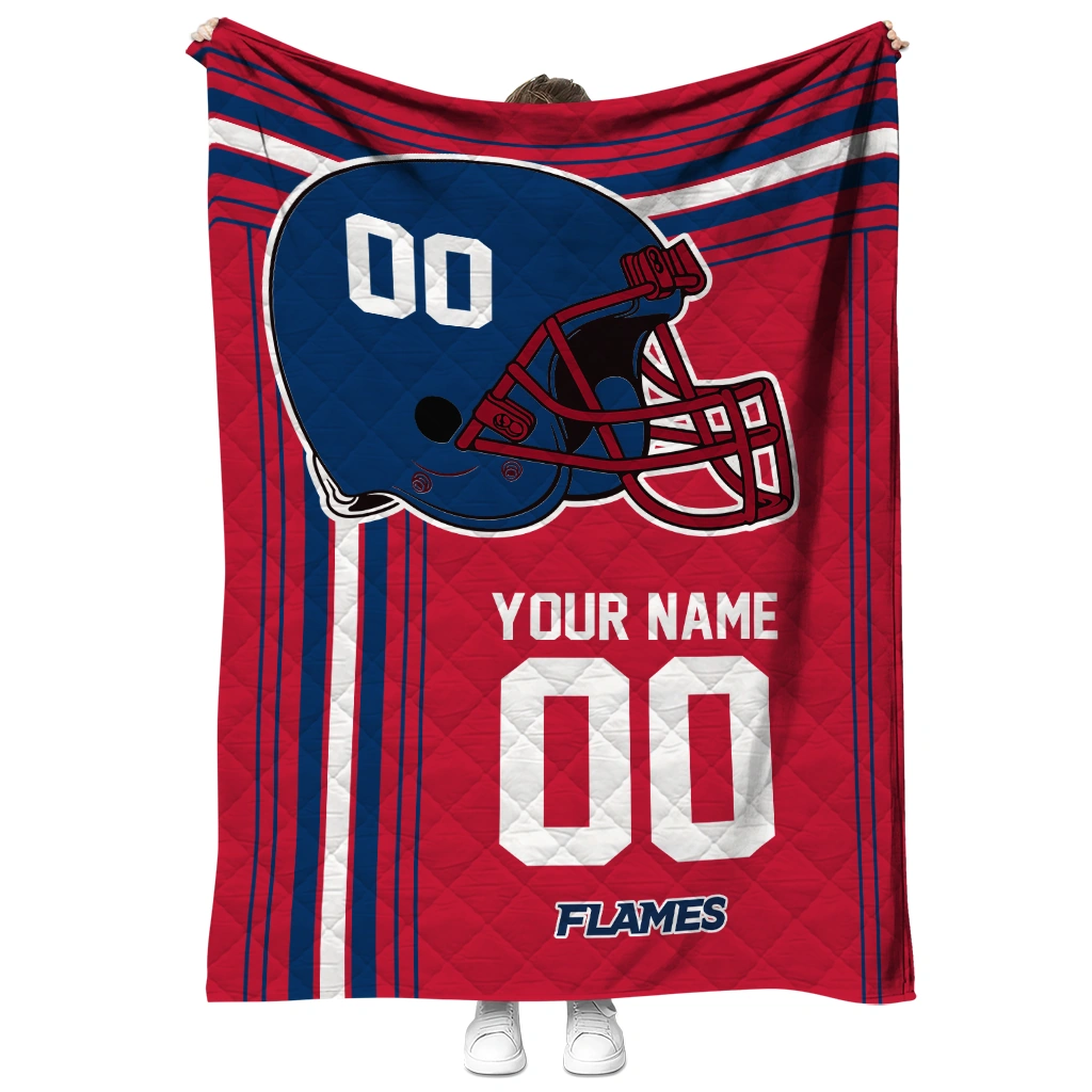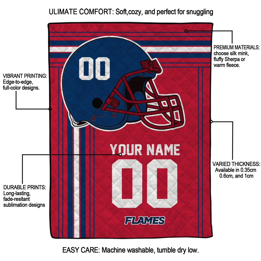 Wrap yourself in warmth and pride with the Custom Liberty Flames Helmet Theme Red Quilt Blanket from the Liberty Flames Blankets collection at Yes That Blanket. Made from 100% premium quilting-weight polyester blended with a touch of microfiber, this quilt offers a smooth, soft finish you’ll love. Choose between two quilting styles—Stipple or Diagonal—and enjoy the comfort of a cotton-filled layer inside that adds extra coziness for every season. The border is available in classic black or white, giving your design a clean, timeless edge.