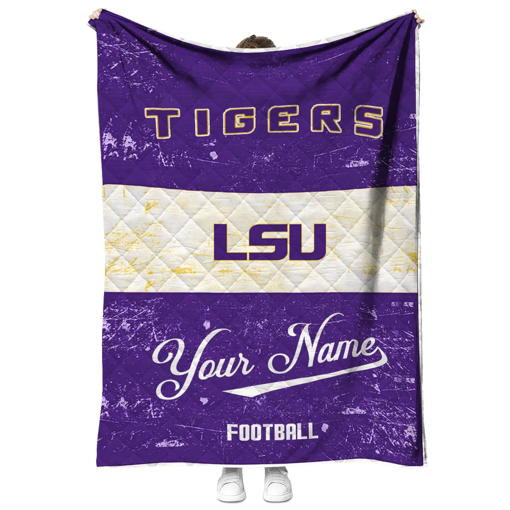 Wrap yourself in warmth and pride with the Custom LSU Tigers Hibiscus Burst Purple White Quilt Blanket from the LSU Tigers Blankets collection at Yes That Blanket. Made from 100% premium quilting-weight polyester blended with a touch of microfiber, this quilt offers a smooth, soft finish you’ll love. Choose between two quilting styles—Stipple or Diagonal—and enjoy the comfort of a cotton-filled layer inside that adds extra coziness for every season. The border is available in classic black or white, giving your design a clean, timeless edge.