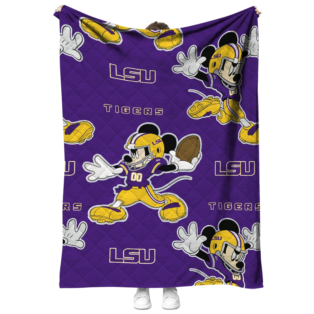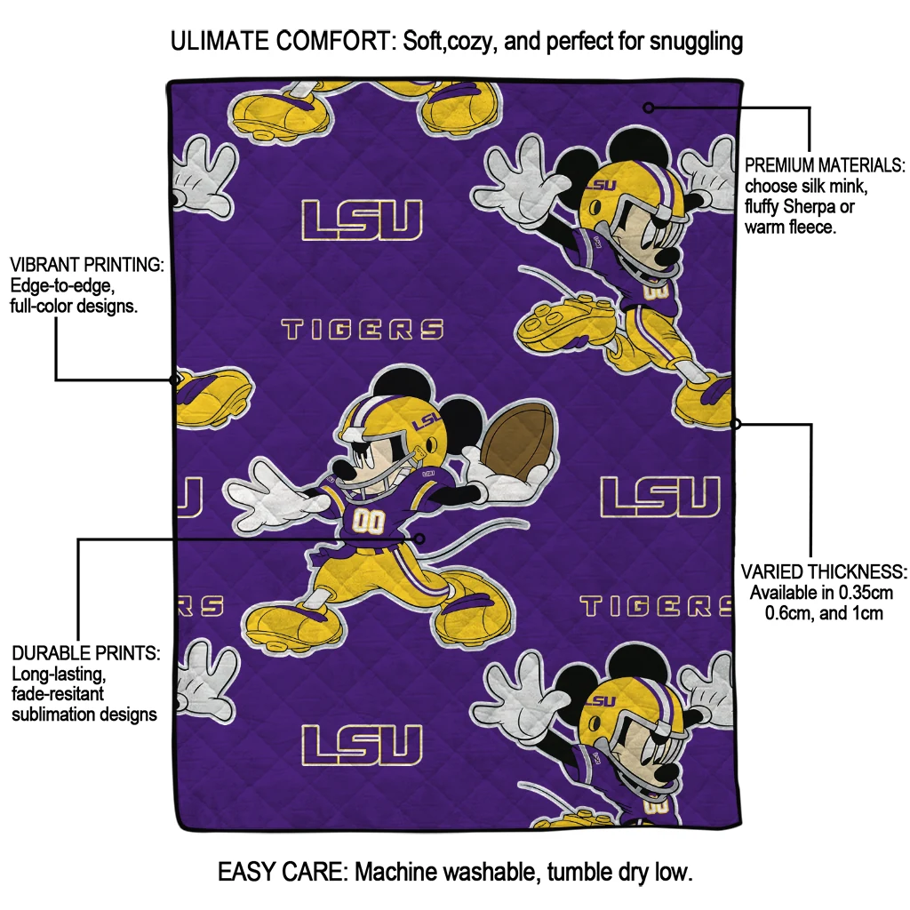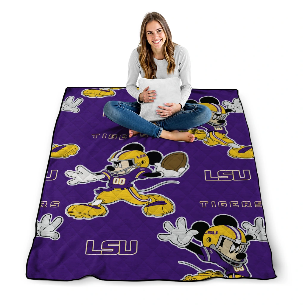 The Custom LSU Tigers Mickey Football Purple Quilt Blanket is more than a blanket—it’s everyday comfort, thoughtfully made. Crafted from premium quilting fabric with a soft microfiber touch, it offers a smooth hand-feel and lasting coziness. Layered quilting with a cotton-filled core provides adaptable warmth across seasons while maintaining a clean, tailored look on your bed or sofa.