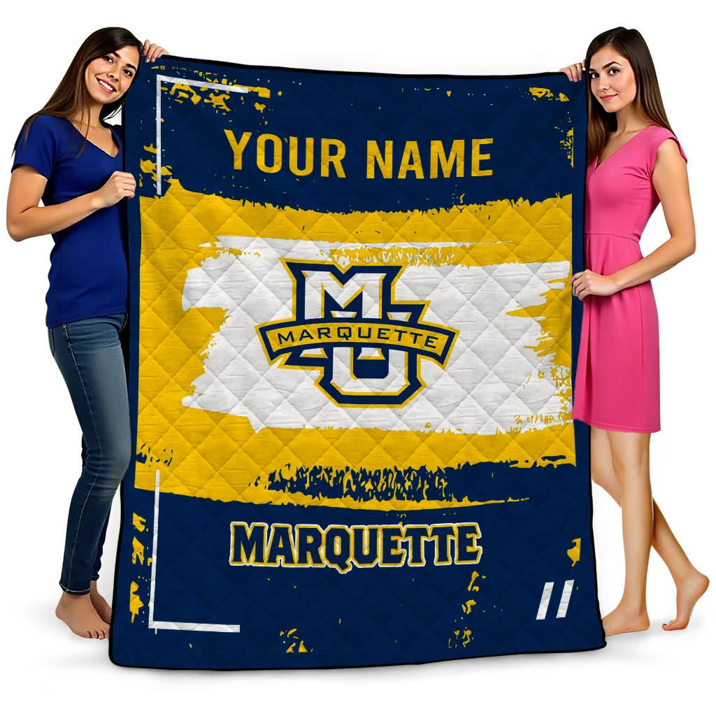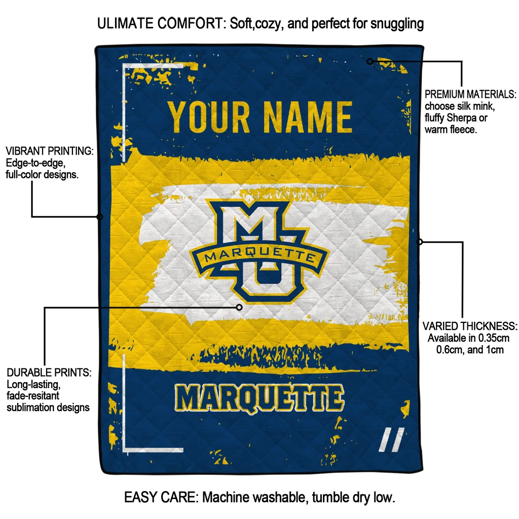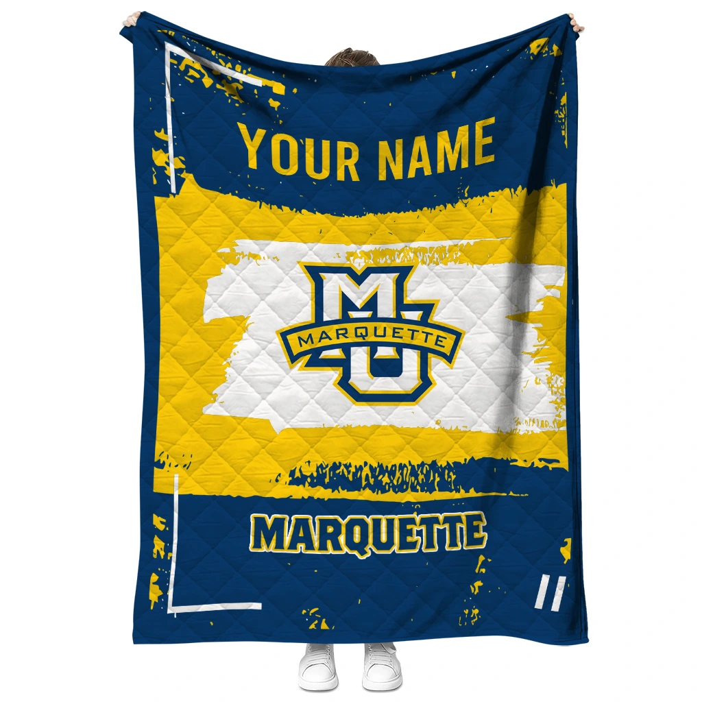 Custom Marquette Golden Eagles Grunge Patch Blue White Quilt Blanket