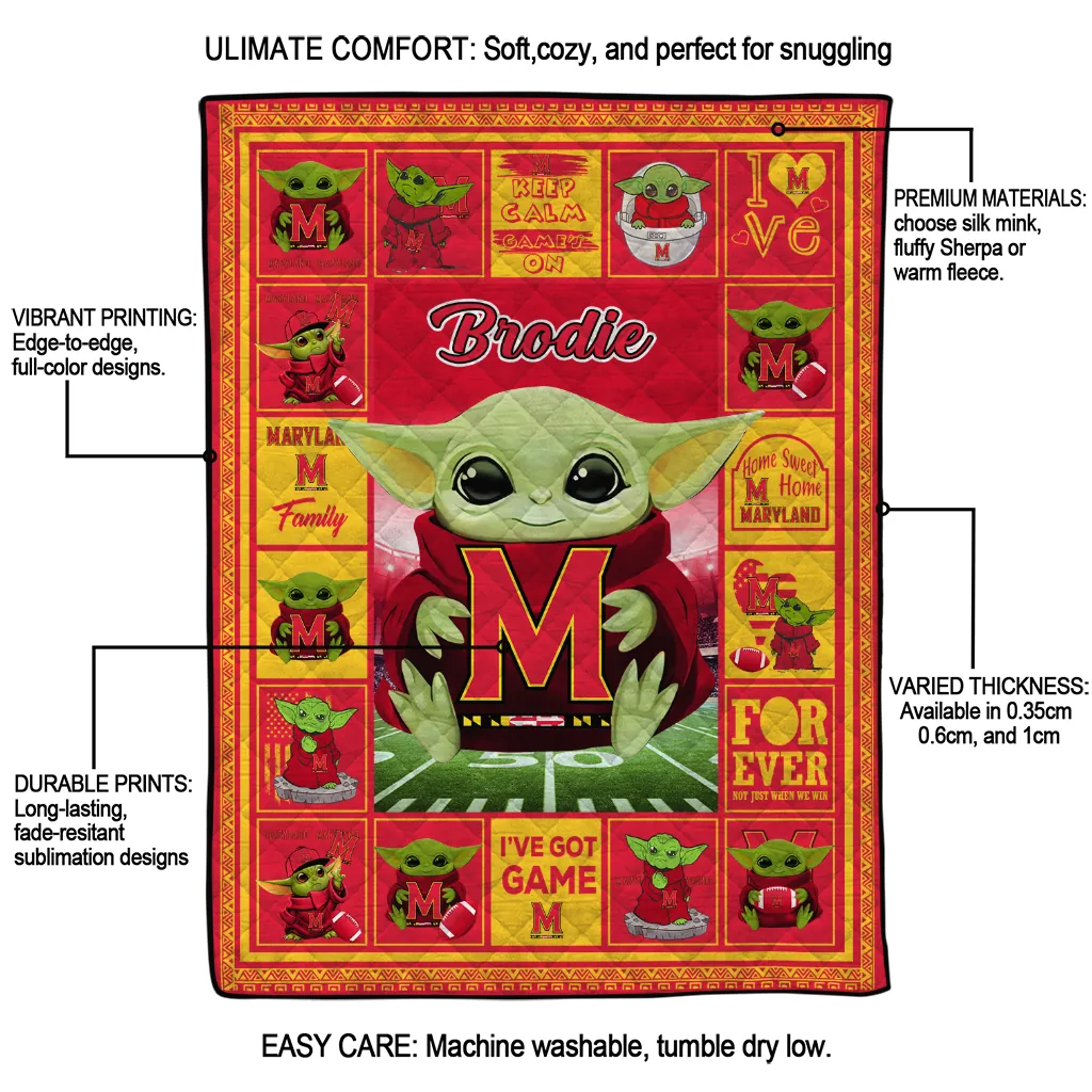Wrap yourself in warmth and pride with the Custom Maryland Terrapins Yody Baby Pattern Red Quilt Blanket from the Maryland Terrapins Blankets collection at Yes That Blanket. Made from 100% premium quilting-weight polyester blended with a touch of microfiber, this quilt offers a smooth, soft finish you’ll love. Choose between two quilting styles—Stipple or Diagonal—and enjoy the comfort of a cotton-filled layer inside that adds extra coziness for every season. The border is available in classic black or white, giving your design a clean, timeless edge.
