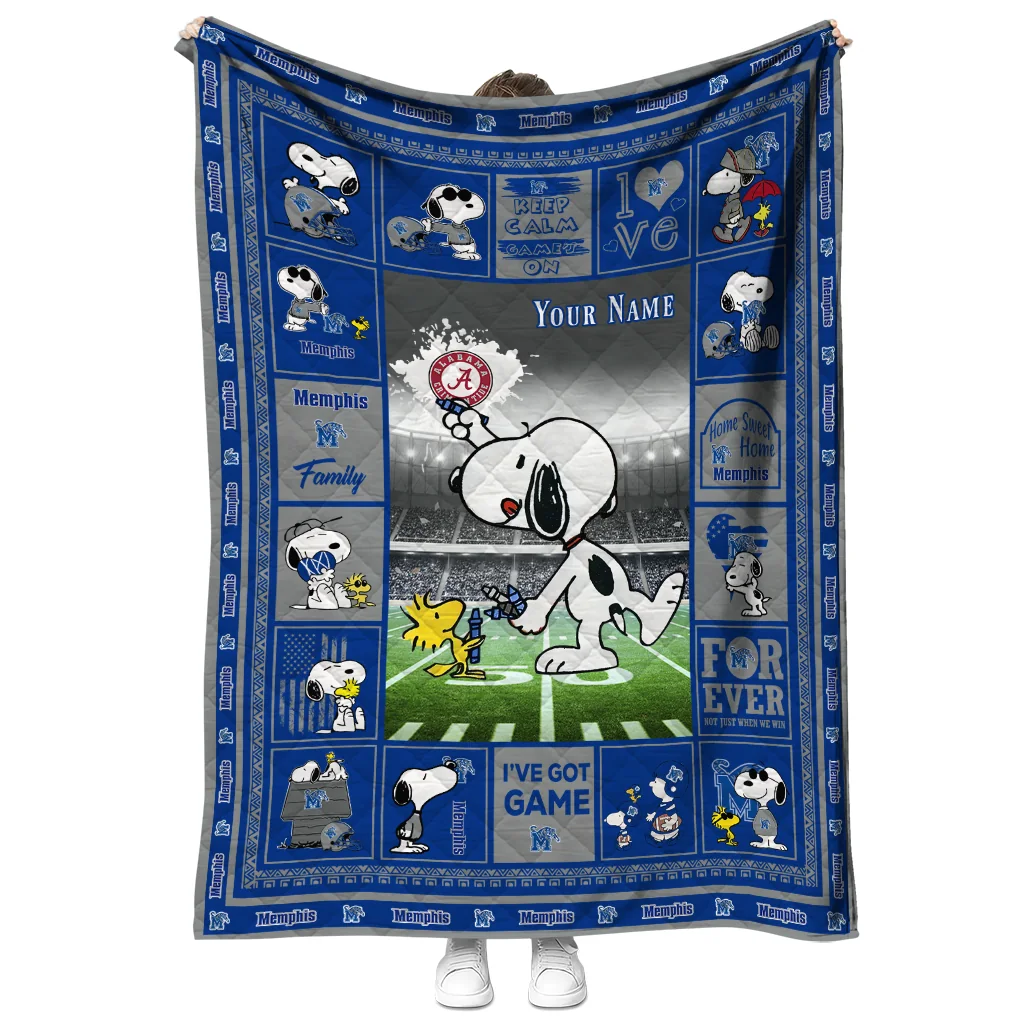 Wrap yourself in warmth and pride with the Custom Memphis Tigers Snoopy Coach Blue Quilt Blanket from the Memphis Tigers Blankets collection at Yes That Blanket. Made from 100% premium quilting-weight polyester blended with a touch of microfiber, this quilt offers a smooth, soft finish you’ll love. Choose between two quilting styles—Stipple or Diagonal—and enjoy the comfort of a cotton-filled layer inside that adds extra coziness for every season. The border is available in classic black or white, giving your design a clean, timeless edge.