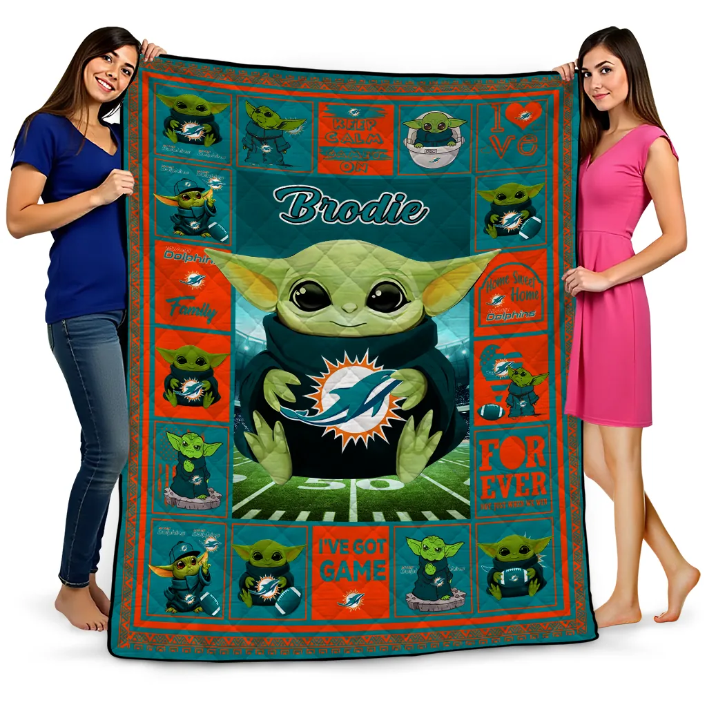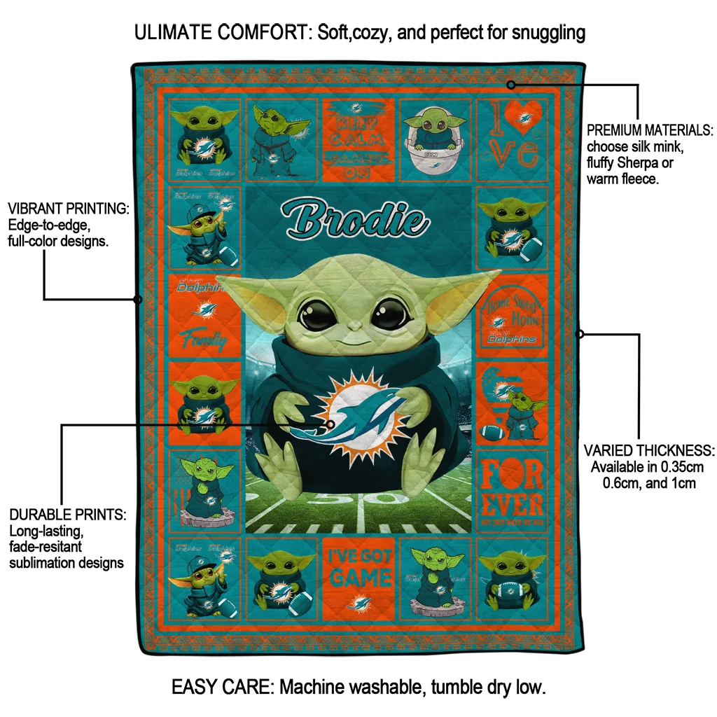 The Custom Miami Dolphins Yody Baby Pattern Aqua Quilt Blanket is more than a blanket—it’s everyday comfort, thoughtfully made. Crafted from premium quilting fabric with a soft microfiber touch, it offers a smooth hand-feel and lasting coziness. Layered quilting with a cotton-filled core provides adaptable warmth across seasons while maintaining a clean, tailored look on your bed or sofa.