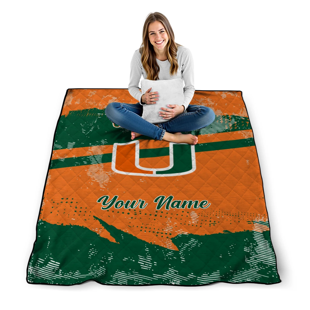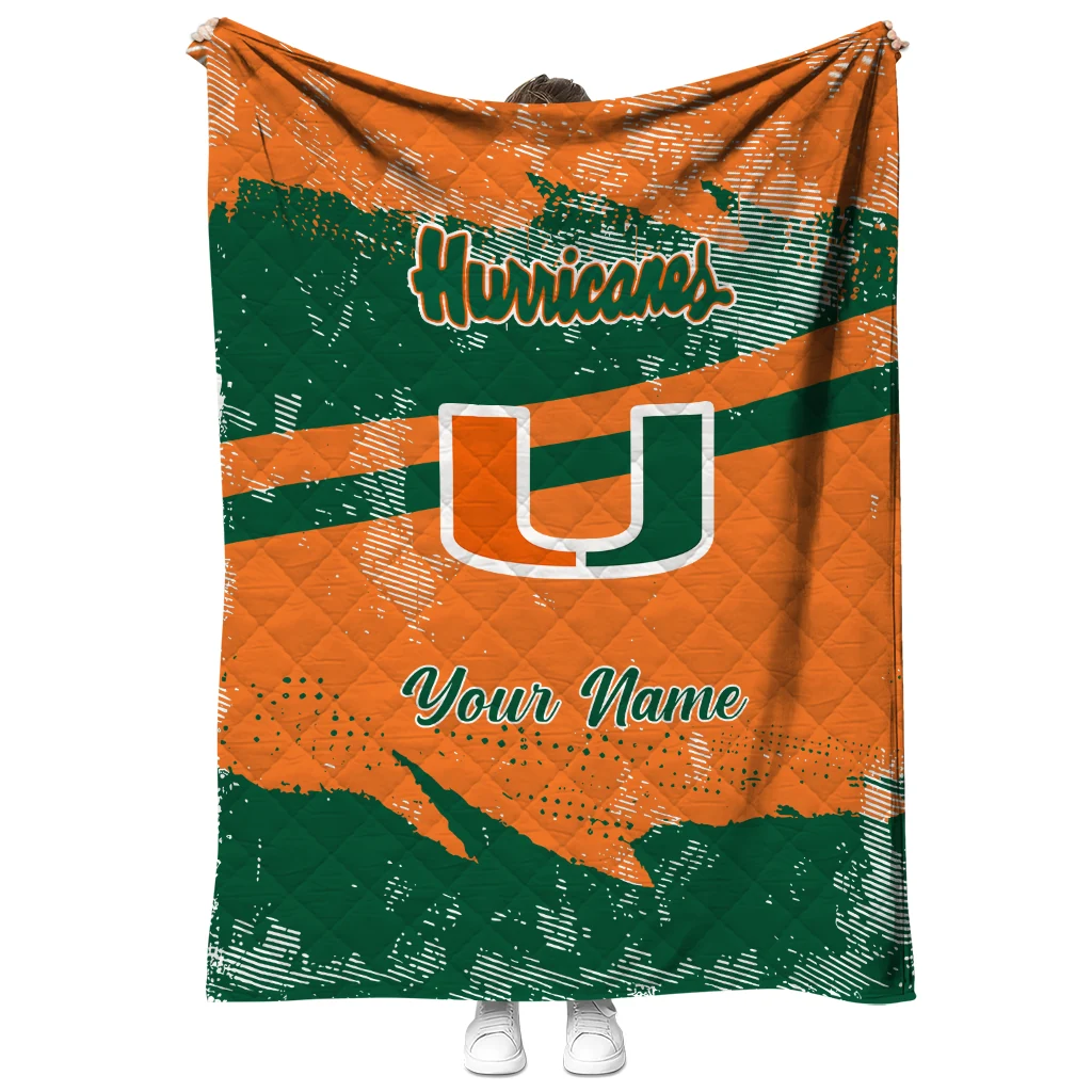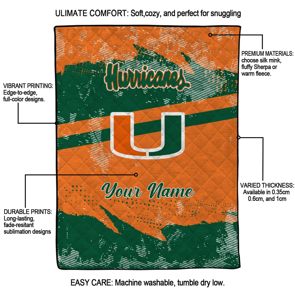 Custom Miami Hurricanes Brushstroke Layers Orange Quilt Blanket