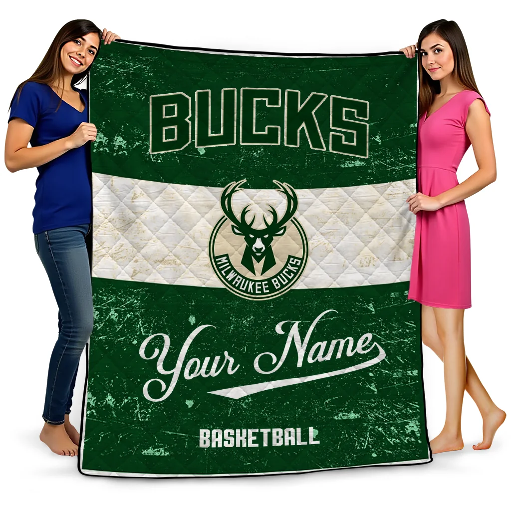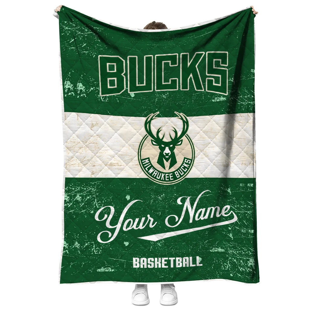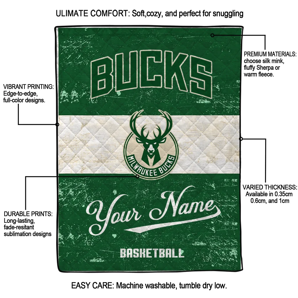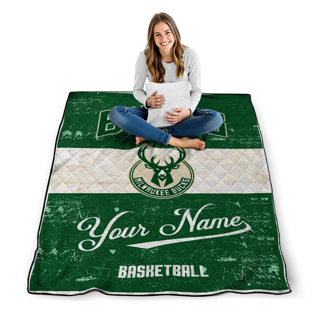 Custom Milwaukee Bucks Helmet Fan Green White Quilt Blanket