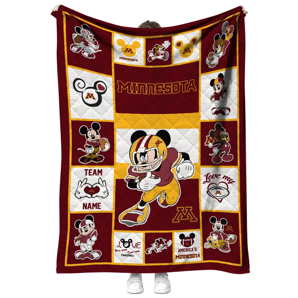 Custom Minnesota Golden Gophers Mickey Crimson Maroon White Quilt Blanket