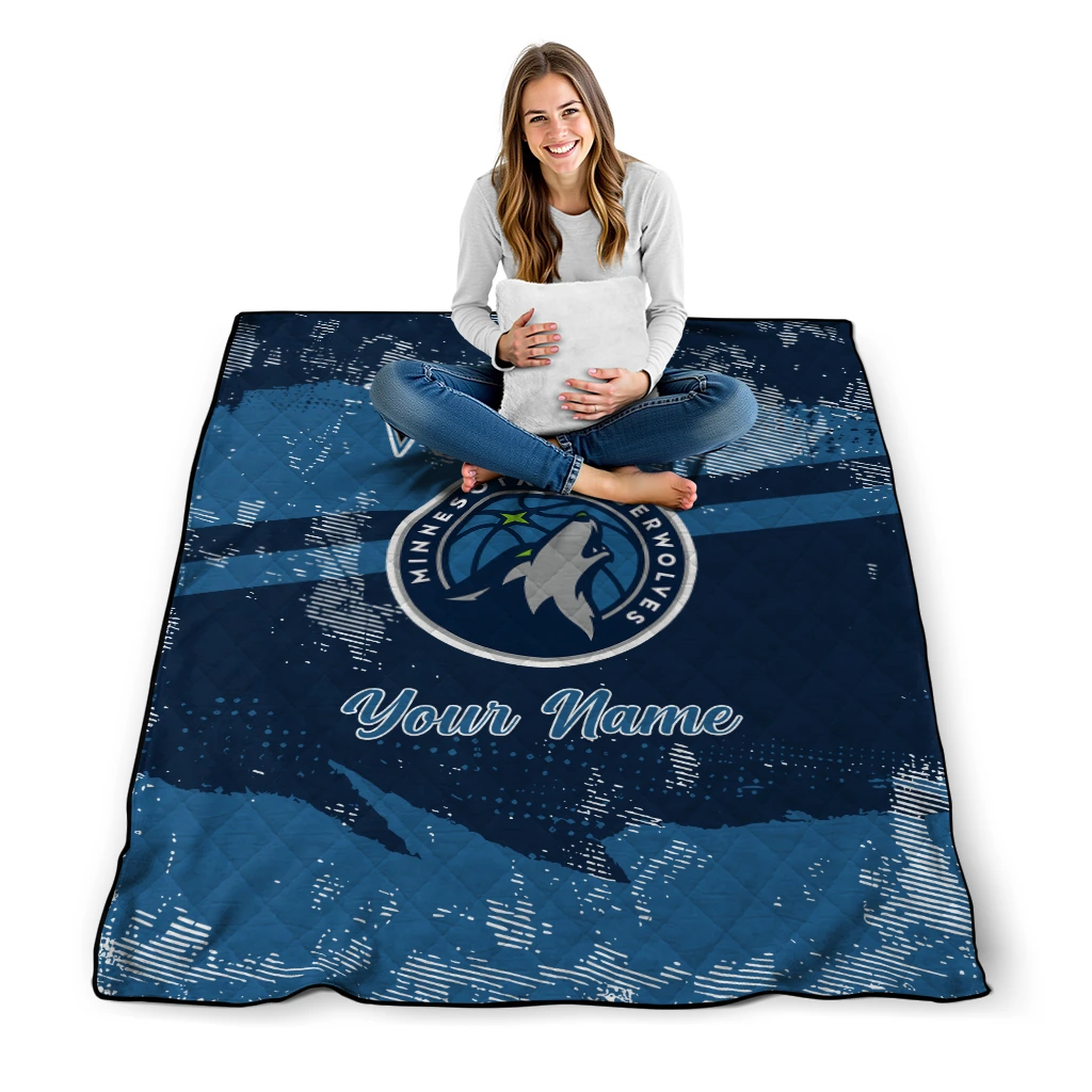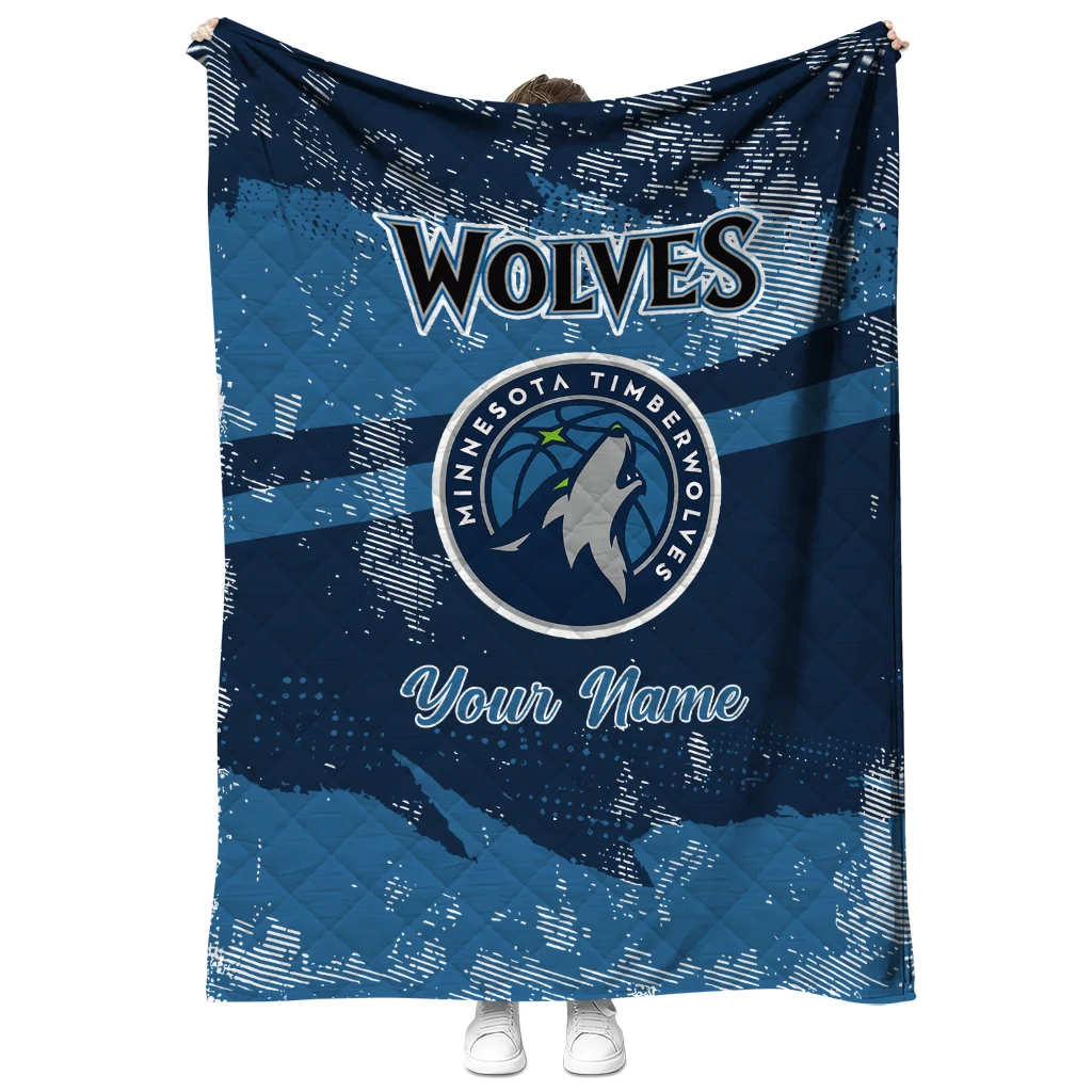 Custom Minnesota Timberwolves Brushstroke Layers Midnight Blue Quilt Blanket