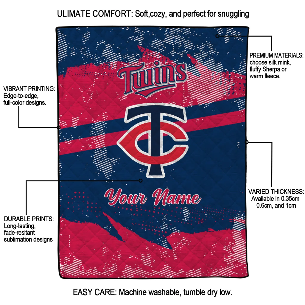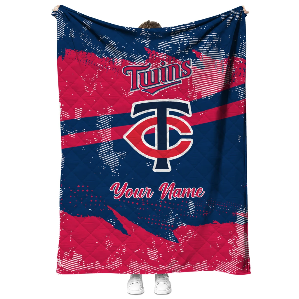 Custom Minnesota Twins Brushstroke Layers Navy Quilt Blanket