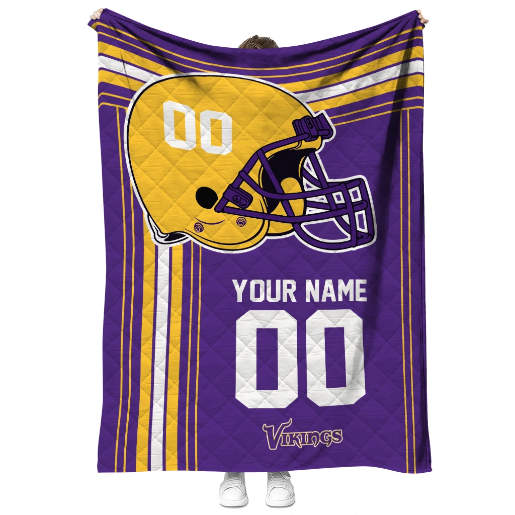 Wrap yourself in warmth and pride with the Custom Minnesota Vikings Helmet Theme Purple Quilt Blanket from the Minnesota Vikings Blankets collection at Yes That Blanket. Made from 100% premium quilting-weight polyester blended with a touch of microfiber, this quilt offers a smooth, soft finish you’ll love. Choose between two quilting styles—Stipple or Diagonal—and enjoy the comfort of a cotton-filled layer inside that adds extra coziness for every season. The border is available in classic black or white, giving your design a clean, timeless edge.
