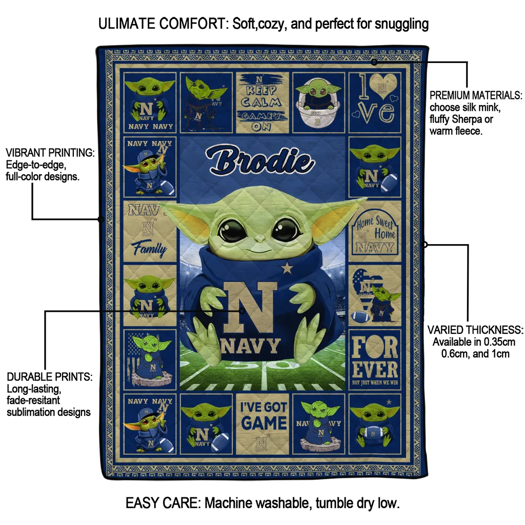 Custom Navy Midshipmen Yody Baby Pattern Blue Quilt Blanket