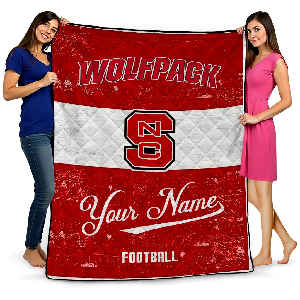 Wrap yourself in warmth and pride with the Custom NC State Wolfpack Hibiscus Burst Red White Quilt Blanket from the NC State Wolfpack Blankets collection at Yes That Blanket. Made from 100% premium quilting-weight polyester blended with a touch of microfiber, this quilt offers a smooth, soft finish you’ll love. Choose between two quilting styles—Stipple or Diagonal—and enjoy the comfort of a cotton-filled layer inside that adds extra coziness for every season. The border is available in classic black or white, giving your design a clean, timeless edge.