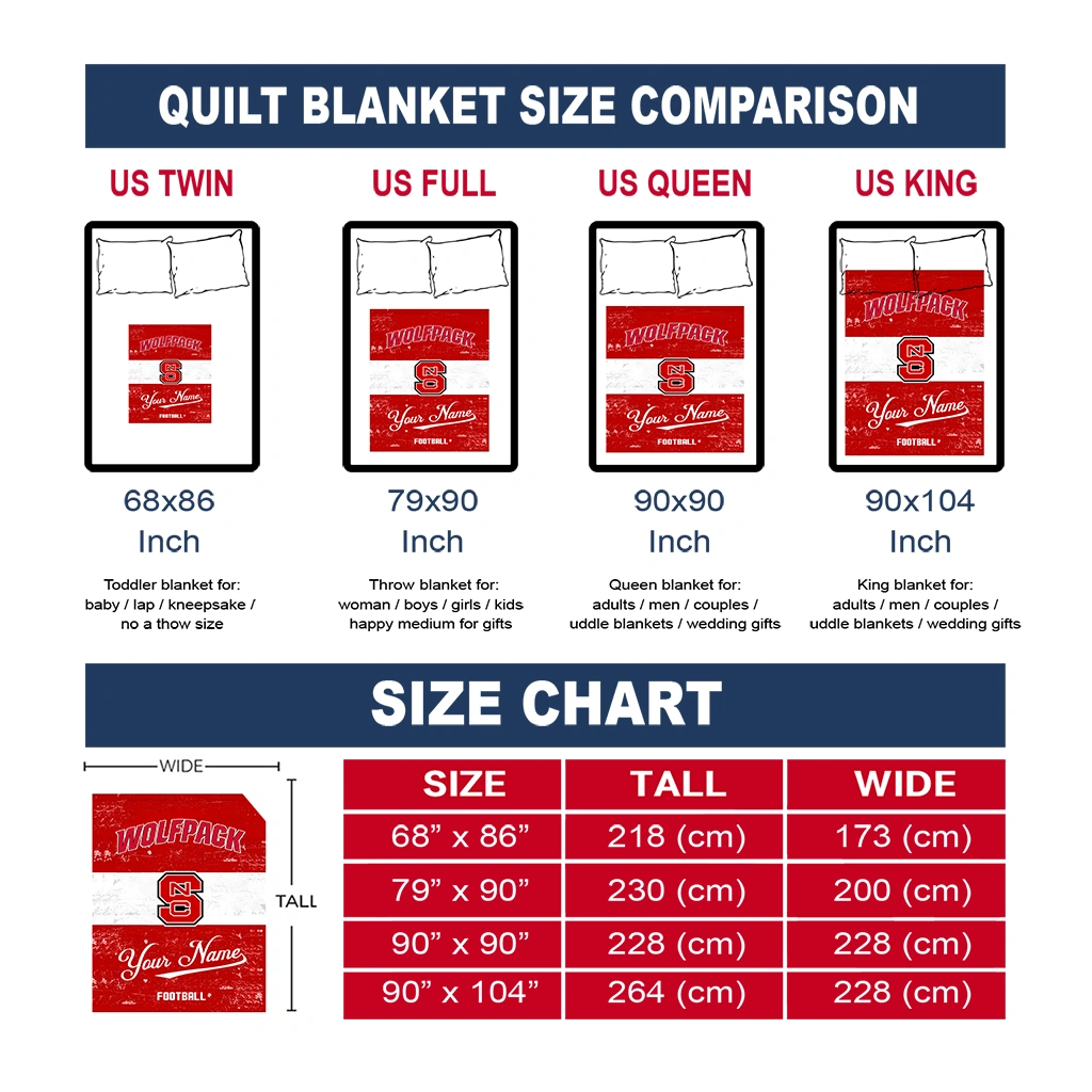 The Custom NC State Wolfpack Hibiscus Burst Red White Quilt Blanket is more than a blanket—it’s everyday comfort, thoughtfully made. Crafted from premium quilting fabric with a soft microfiber touch, it offers a smooth hand-feel and lasting coziness. Layered quilting with a cotton-filled core provides adaptable warmth across seasons while maintaining a clean, tailored look on your bed or sofa.