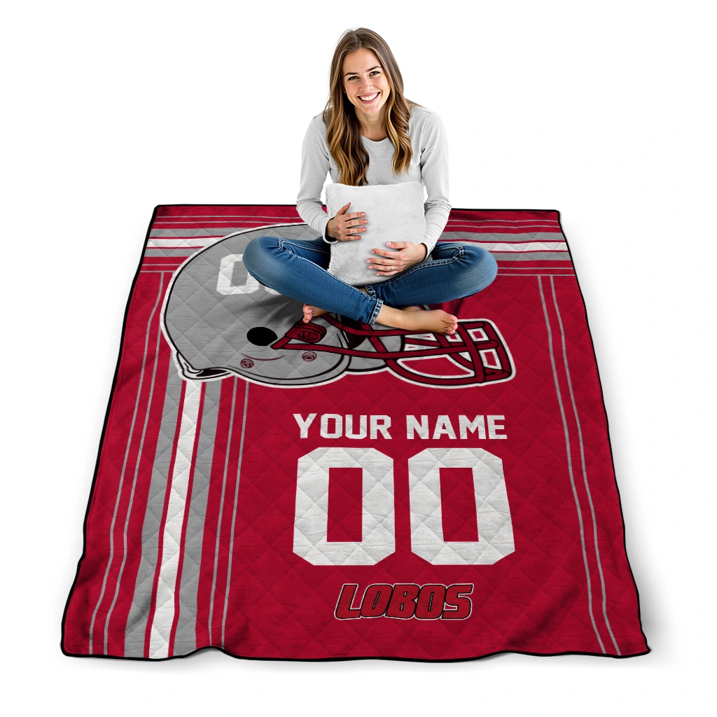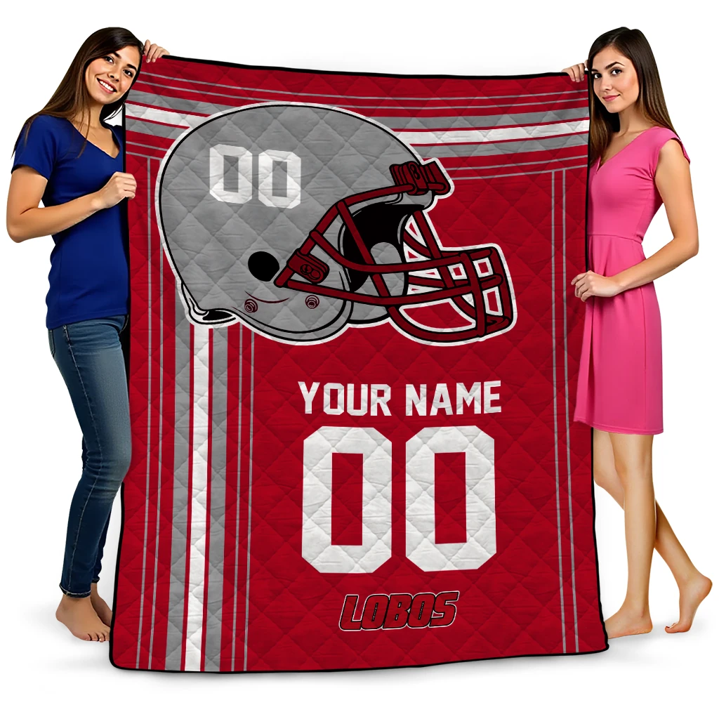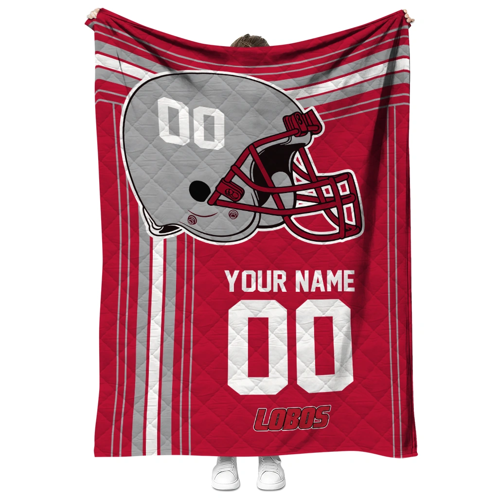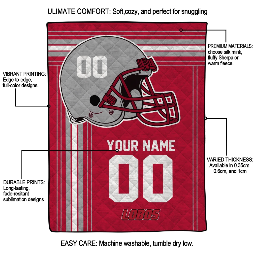 Custom New Mexico Lobos Helmet Theme Red Quilt Blanket