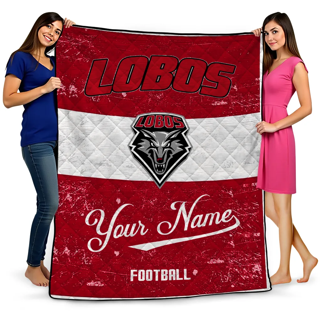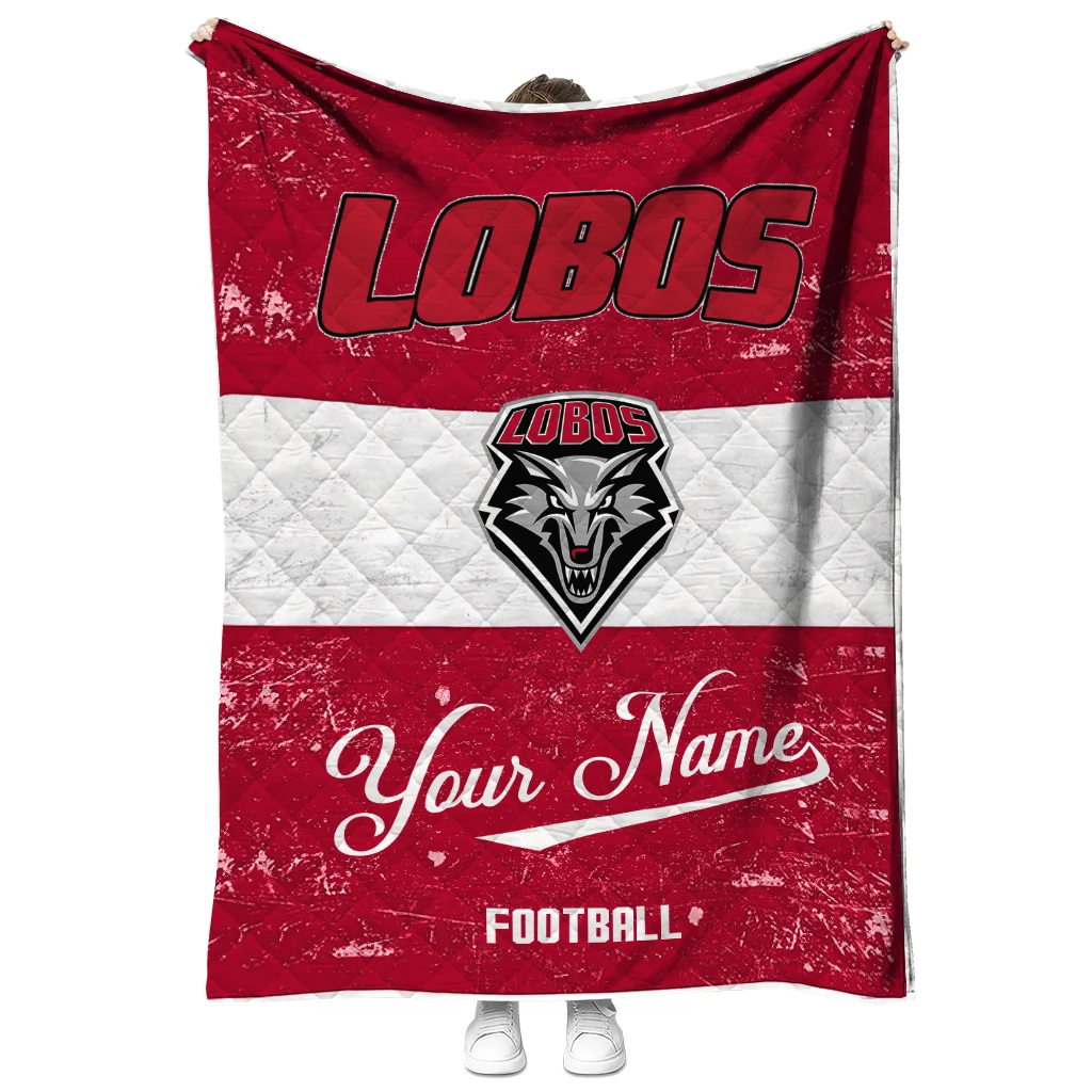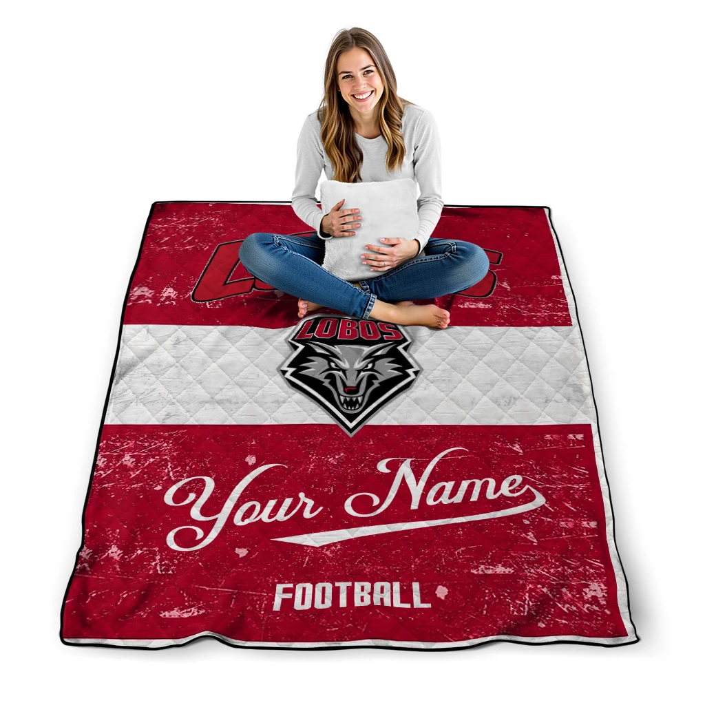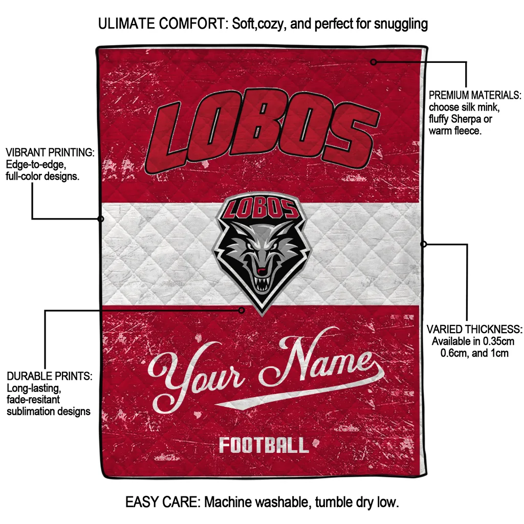 Custom New Mexico Lobos Hibiscus Burst Red White Quilt Blanket