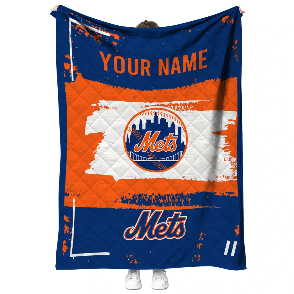 Wrap yourself in warmth and pride with the Custom New York Mets Grunge Patch Blue White Quilt Blanket from the New York Mets Blankets collection at Yes That Blanket. Made from 100% premium quilting-weight polyester blended with a touch of microfiber, this quilt offers a smooth, soft finish you’ll love. Choose between two quilting styles—Stipple or Diagonal—and enjoy the comfort of a cotton-filled layer inside that adds extra coziness for every season. The border is available in classic black or white, giving your design a clean, timeless edge.