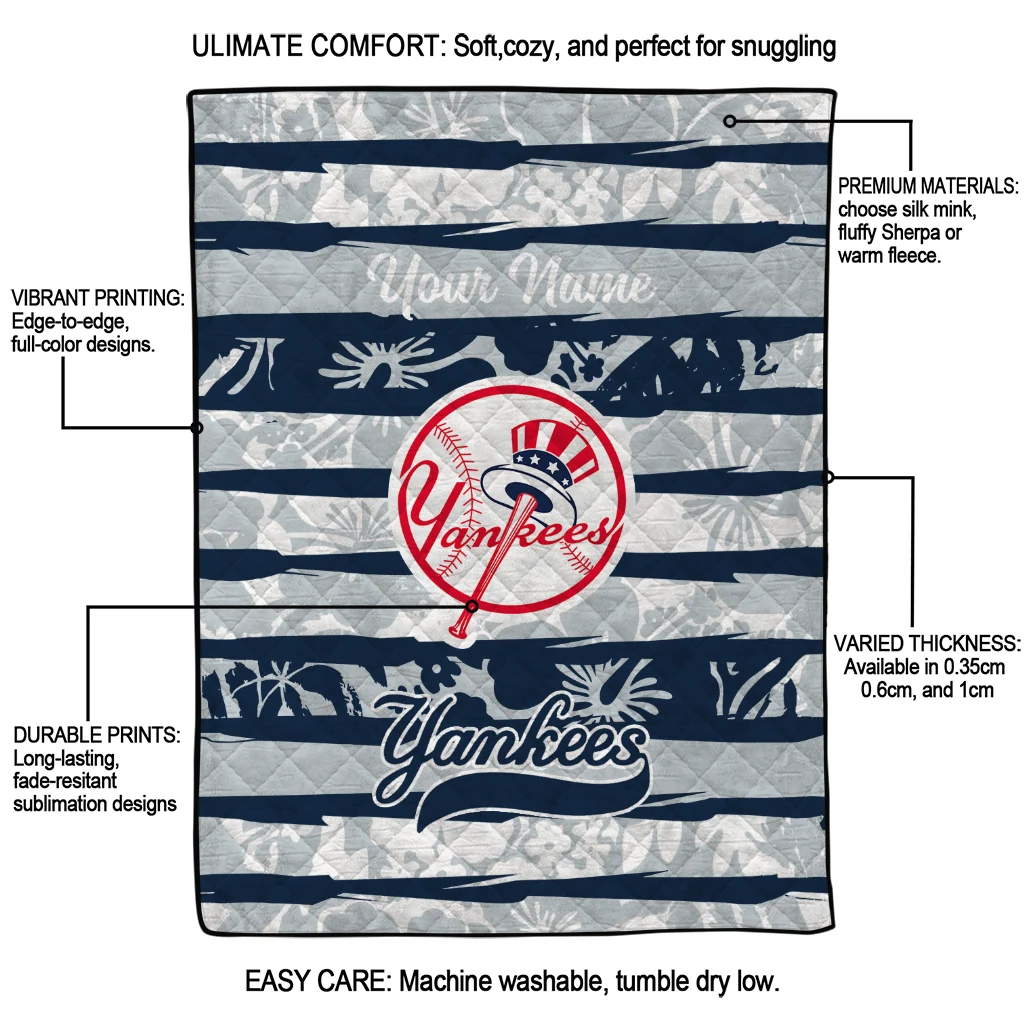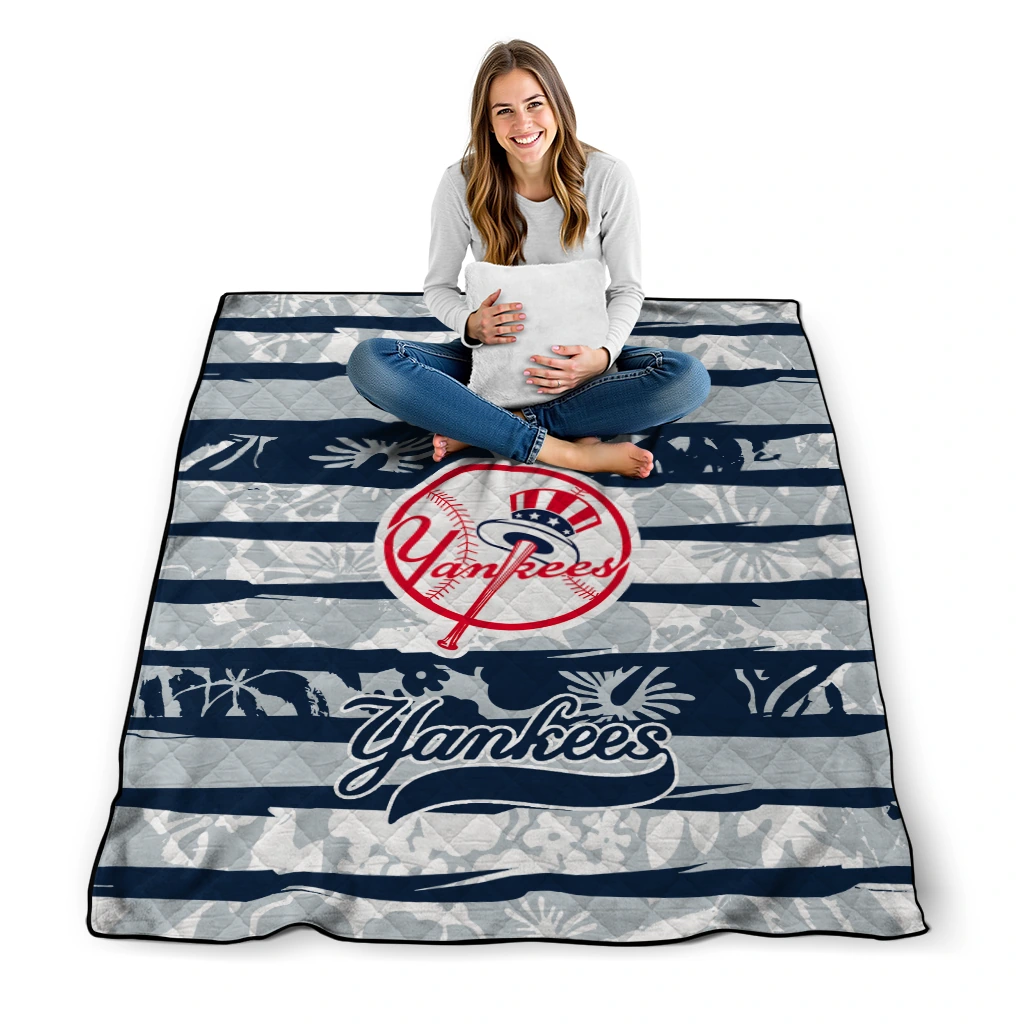 The Custom New York Yankees Layered Florals Navy White Quilt Blanket is more than a blanket—it’s everyday comfort, thoughtfully made. Crafted from premium quilting fabric with a soft microfiber touch, it offers a smooth hand-feel and lasting coziness. Layered quilting with a cotton-filled core provides adaptable warmth across seasons while maintaining a clean, tailored look on your bed or sofa.