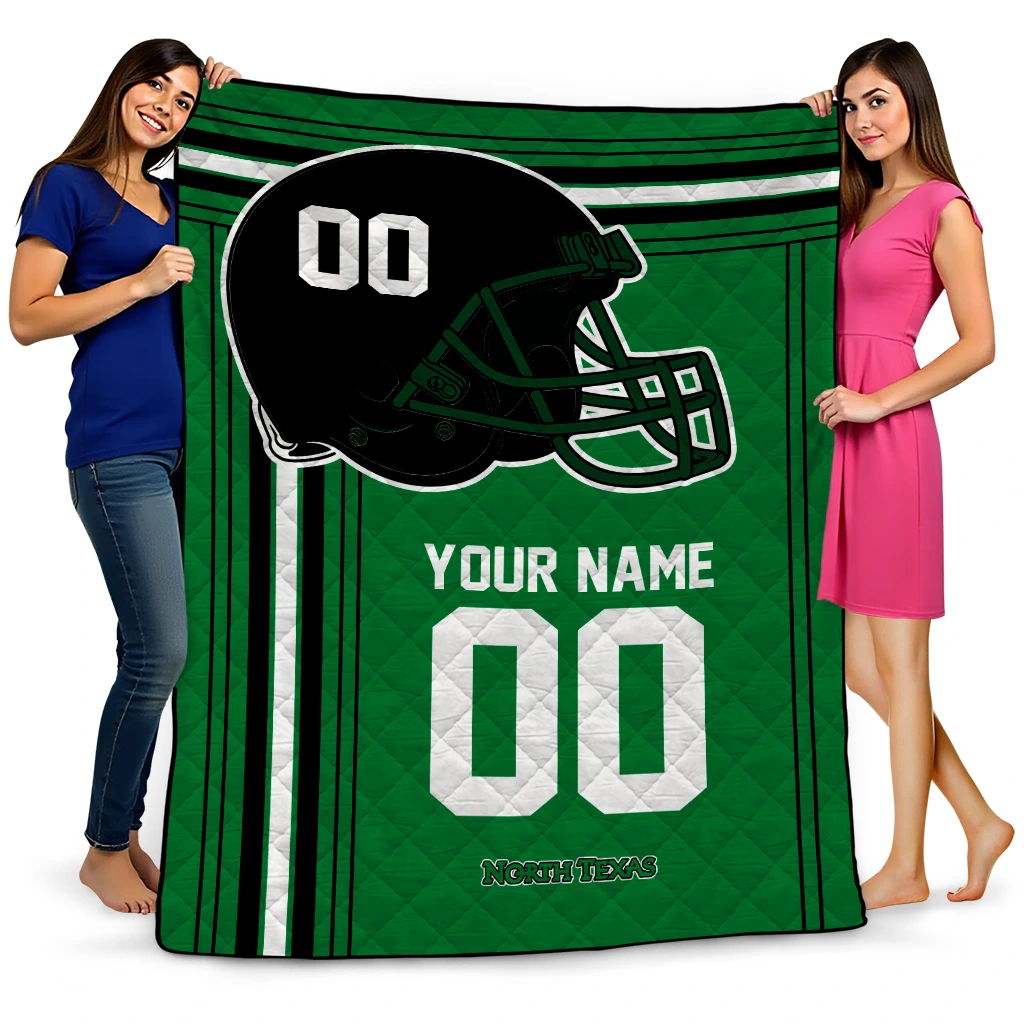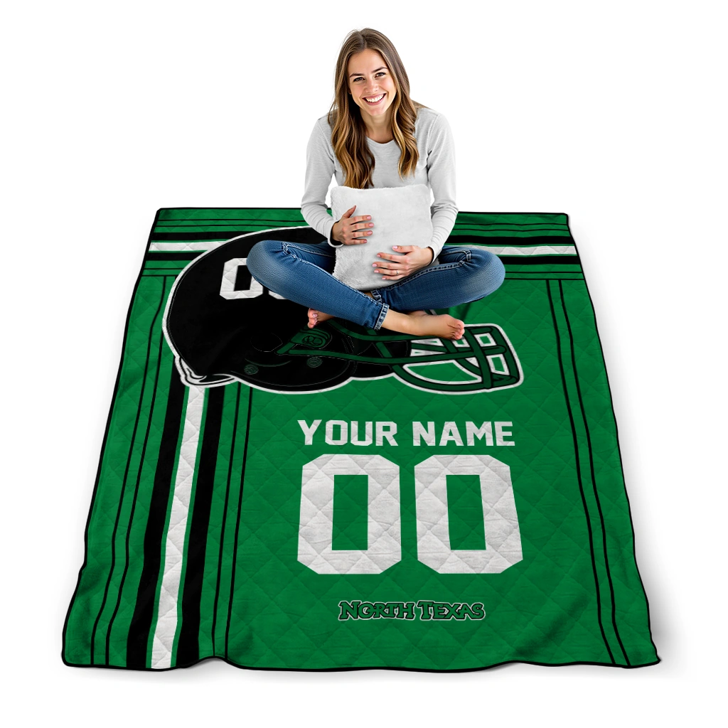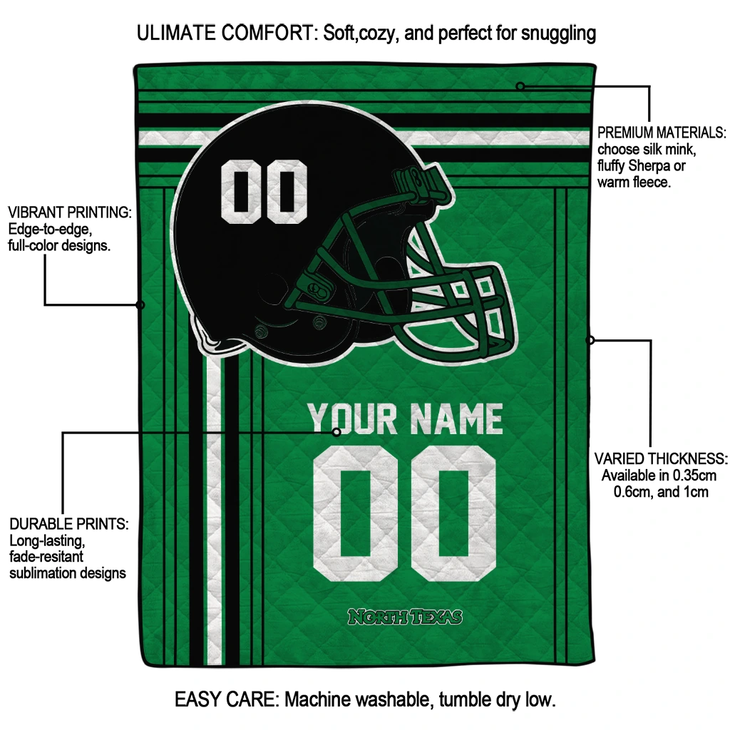 The Custom North Texas Mean Green Helmet Theme Green Quilt Blanket is more than a blanket—it’s everyday comfort, thoughtfully made. Crafted from premium quilting fabric with a soft microfiber touch, it offers a smooth hand-feel and lasting coziness. Layered quilting with a cotton-filled core provides adaptable warmth across seasons while maintaining a clean, tailored look on your bed or sofa.