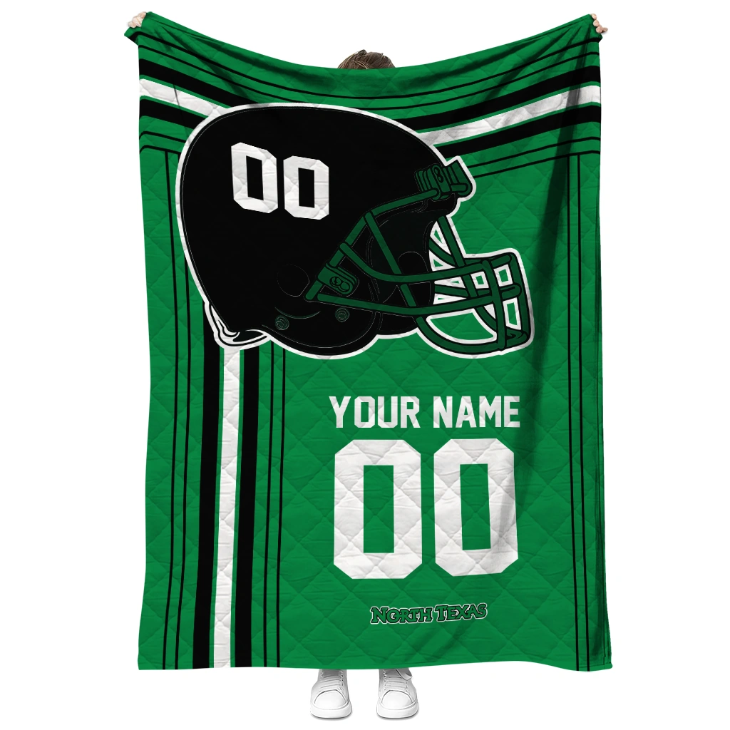 Wrap yourself in warmth and pride with the Custom North Texas Mean Green Helmet Theme Green Quilt Blanket from the North Texas Mean Green Blankets collection at Yes That Blanket. Made from 100% premium quilting-weight polyester blended with a touch of microfiber, this quilt offers a smooth, soft finish you’ll love. Choose between two quilting styles—Stipple or Diagonal—and enjoy the comfort of a cotton-filled layer inside that adds extra coziness for every season. The border is available in classic black or white, giving your design a clean, timeless edge.