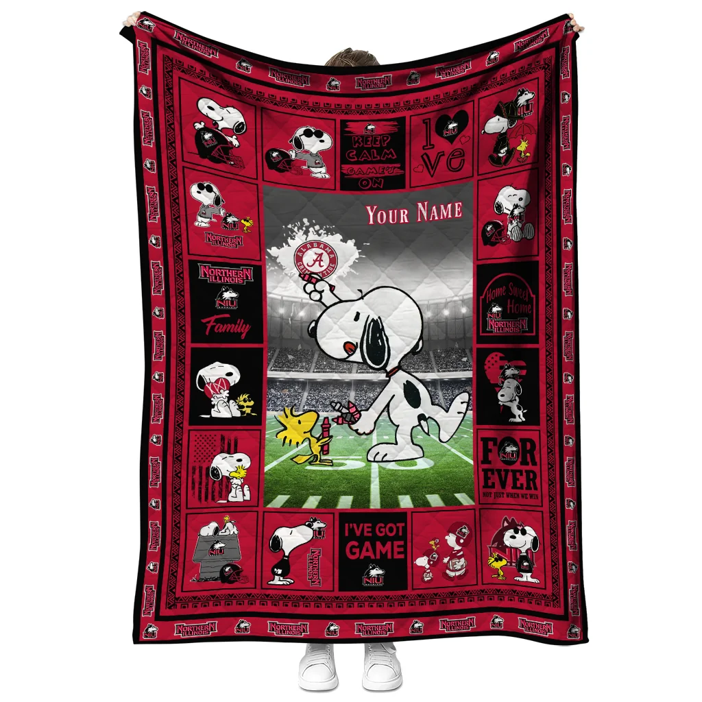 Custom Northern Illinois Huskies Snoopy Coach Red Quilt Blanket