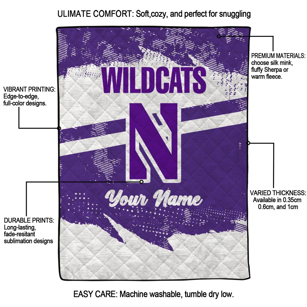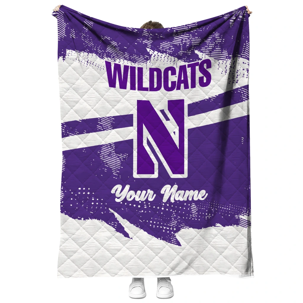 Wrap yourself in warmth and pride with the Custom Northwestern Wildcats Brushstroke Layers Purple Quilt Blanket from the Northwestern Wildcats Blankets collection at Yes That Blanket. Made from 100% premium quilting-weight polyester blended with a touch of microfiber, this quilt offers a smooth, soft finish you’ll love. Choose between two quilting styles—Stipple or Diagonal—and enjoy the comfort of a cotton-filled layer inside that adds extra coziness for every season. The border is available in classic black or white, giving your design a clean, timeless edge.