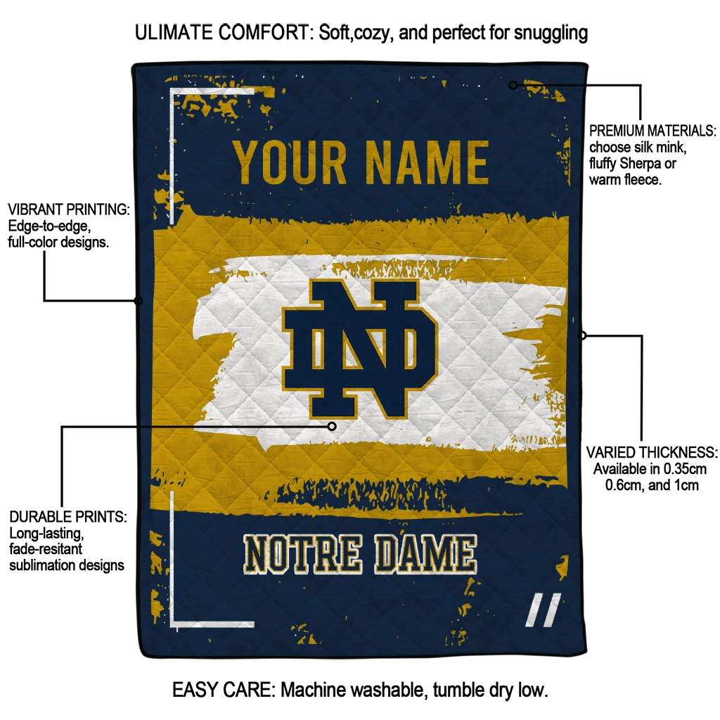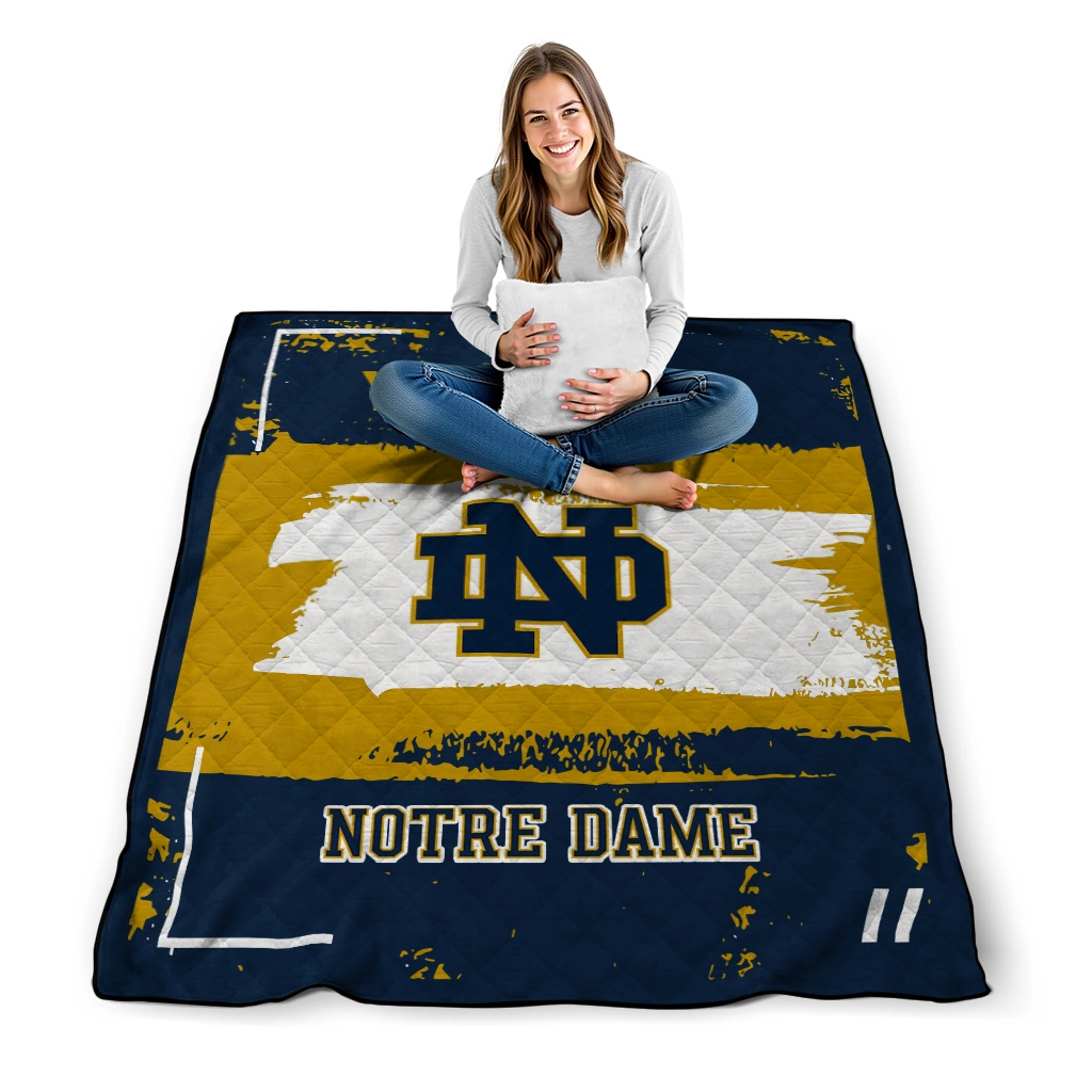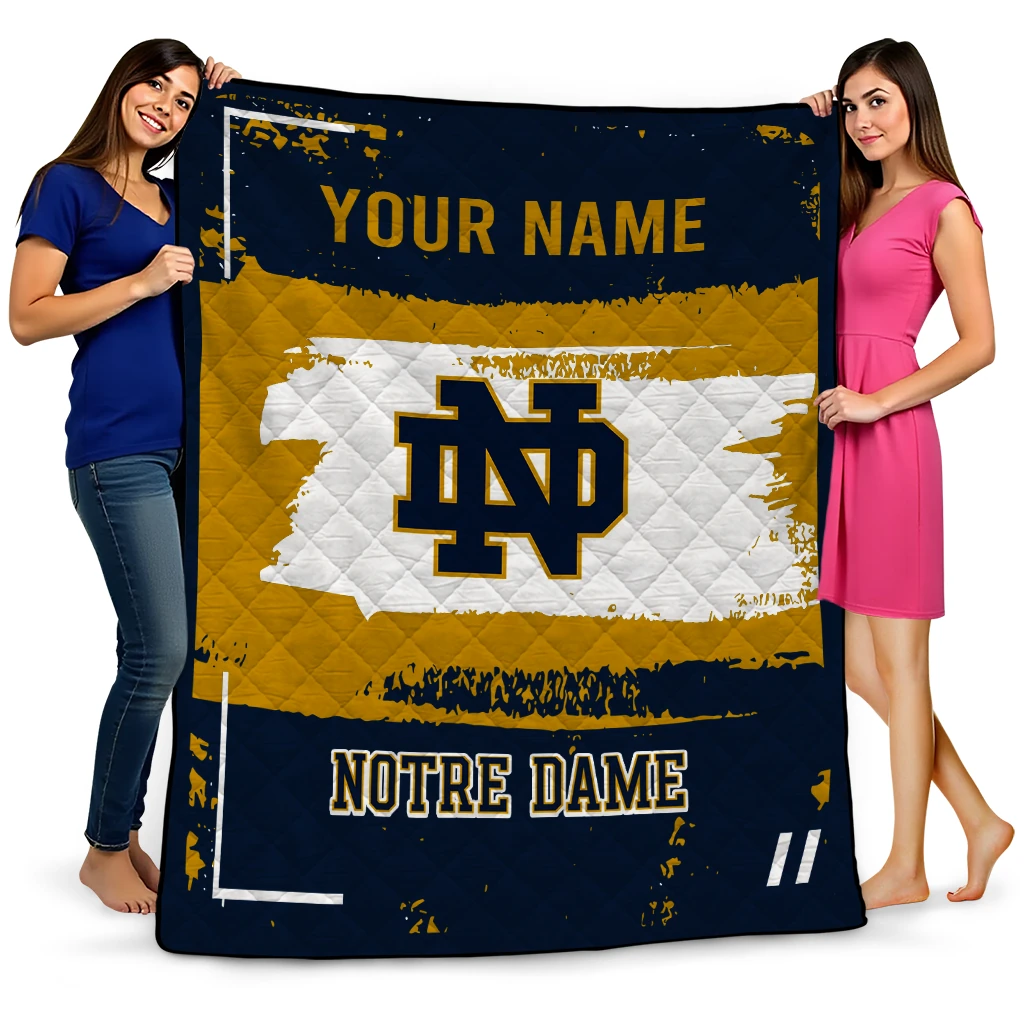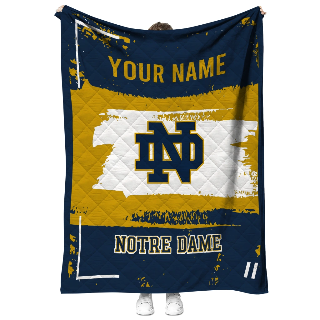 Custom Notre Dame Fighting Irish Grunge Patch Navy White Quilt Blanket