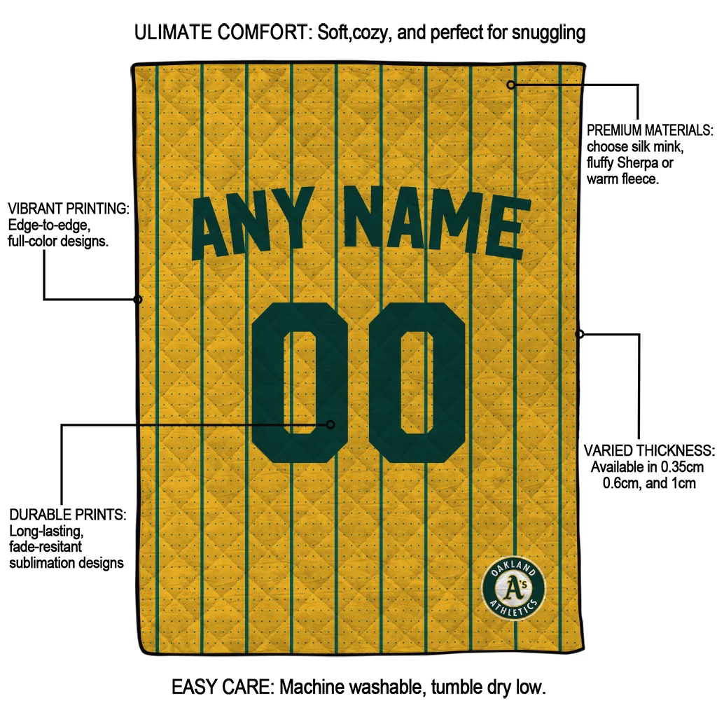 The Custom Oakland Athletics Pin Dot Quilt Blanket is more than a blanket—it’s everyday comfort, thoughtfully made. Crafted from premium quilting fabric with a soft microfiber touch, it offers a smooth hand-feel and lasting coziness. Layered quilting with a cotton-filled core provides adaptable warmth across seasons while maintaining a clean, tailored look on your bed or sofa.