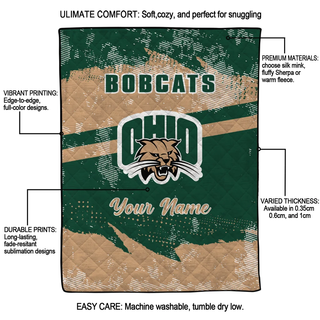 Custom Ohio Bobcats Brushstroke Layers Green Quilt Blanket