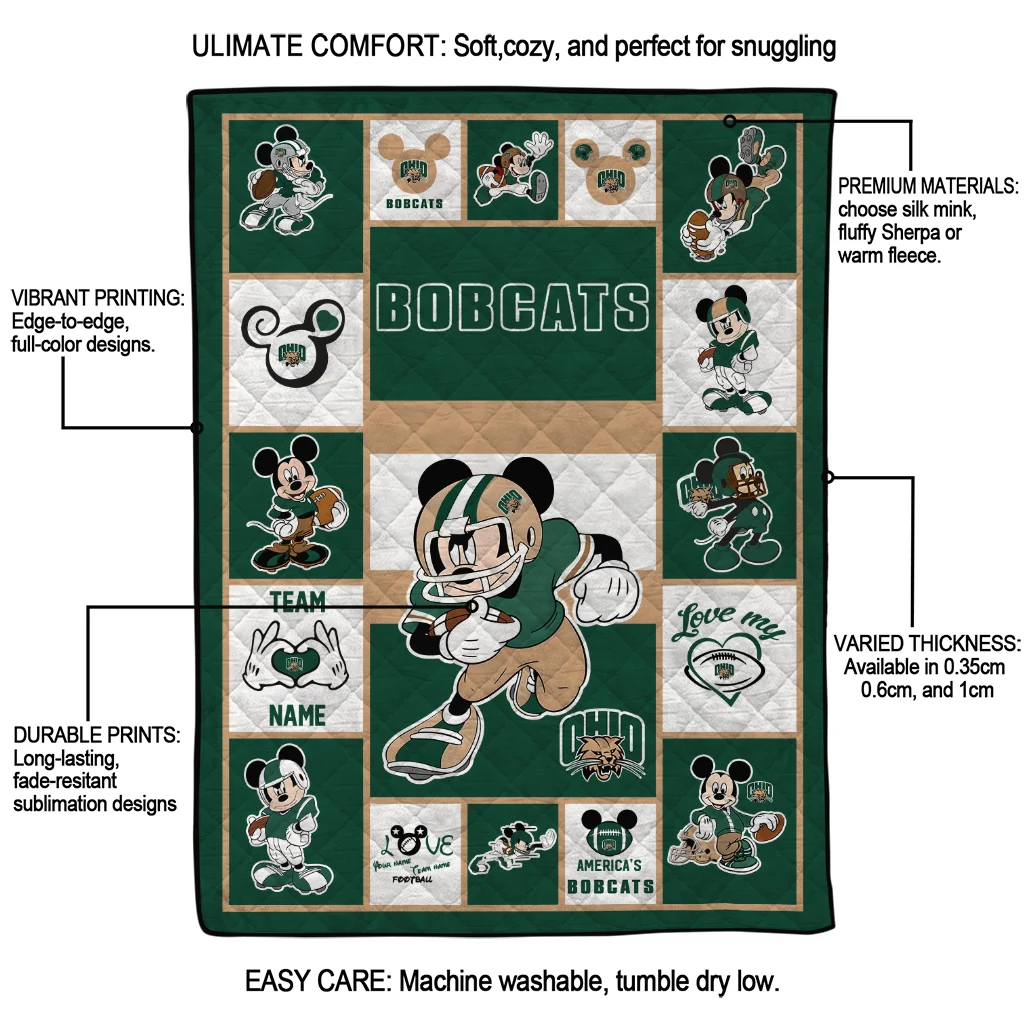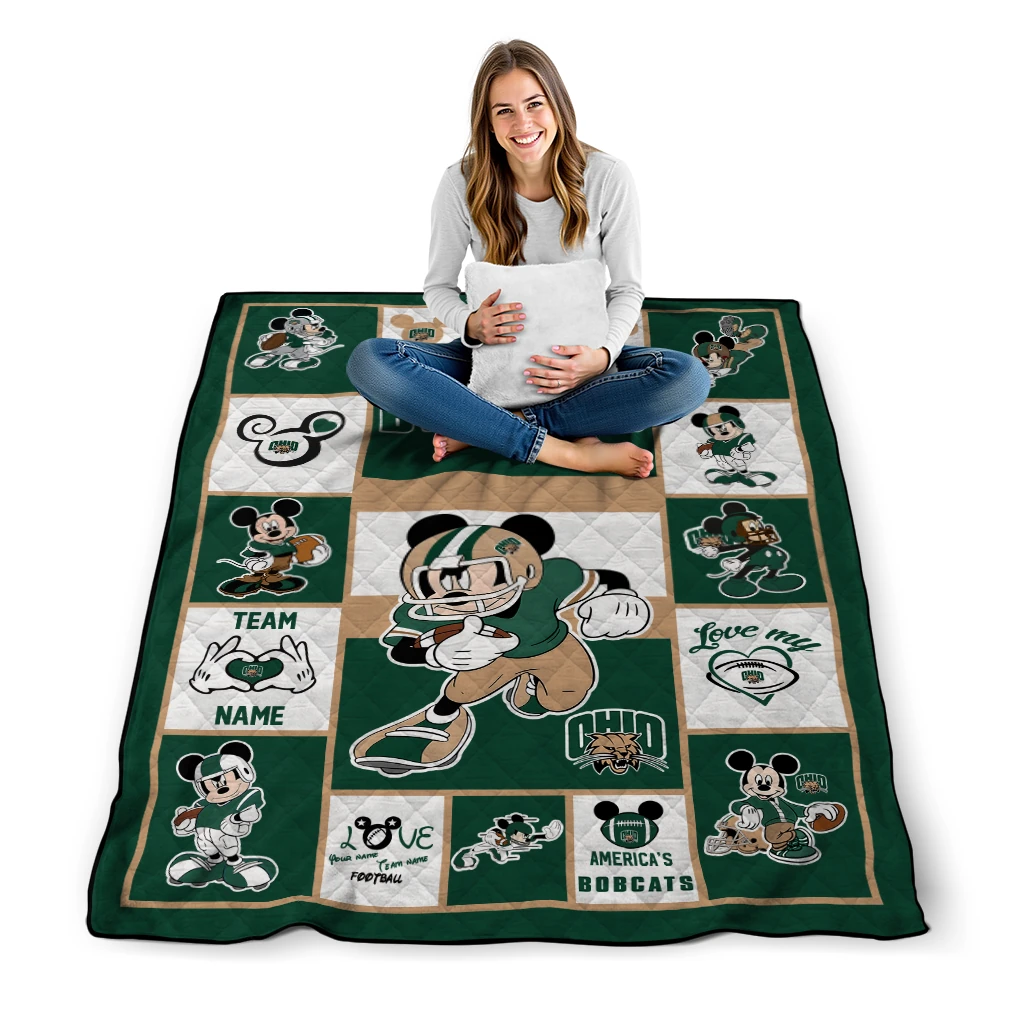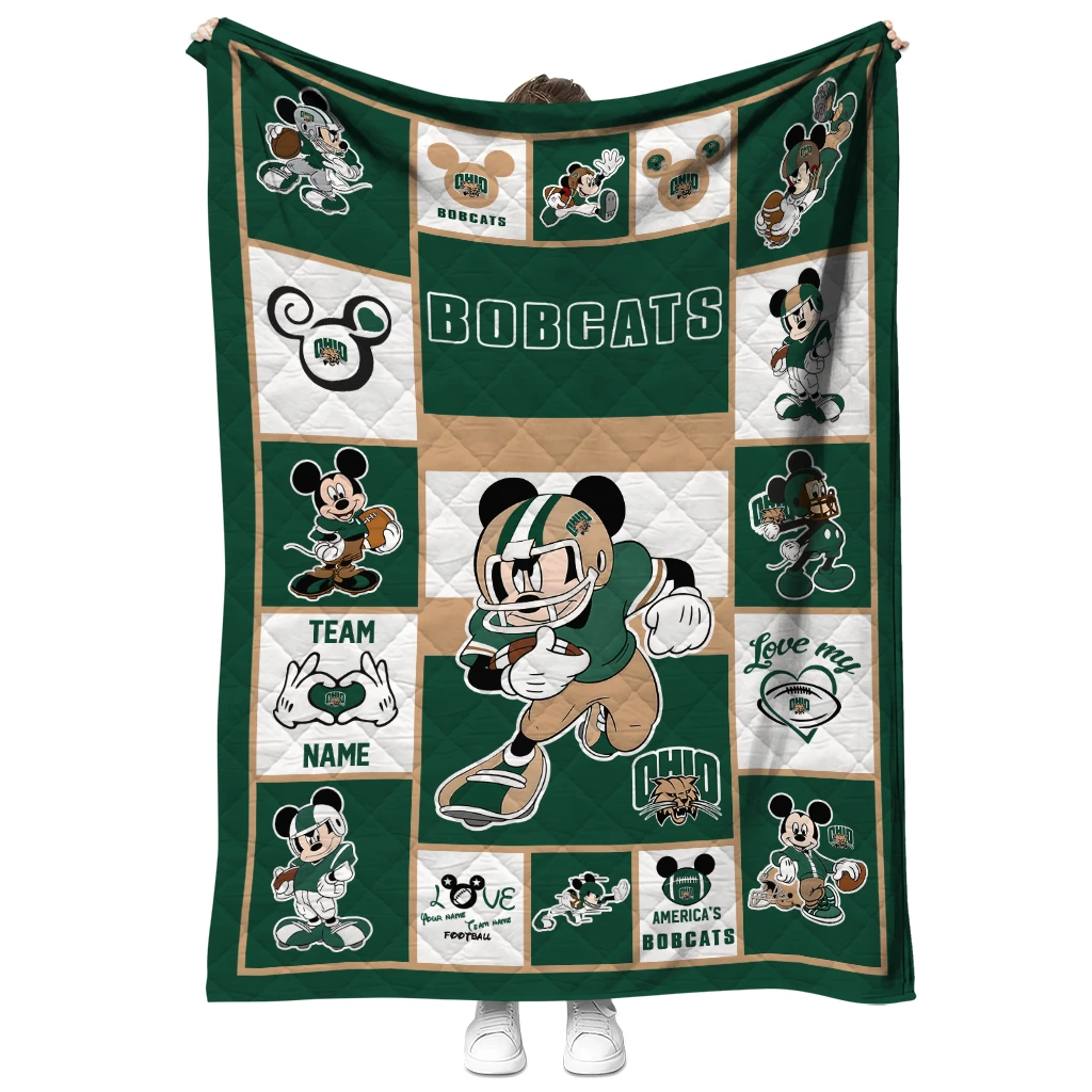 Custom Ohio Bobcats Mickey Crimson Green White Quilt Blanket