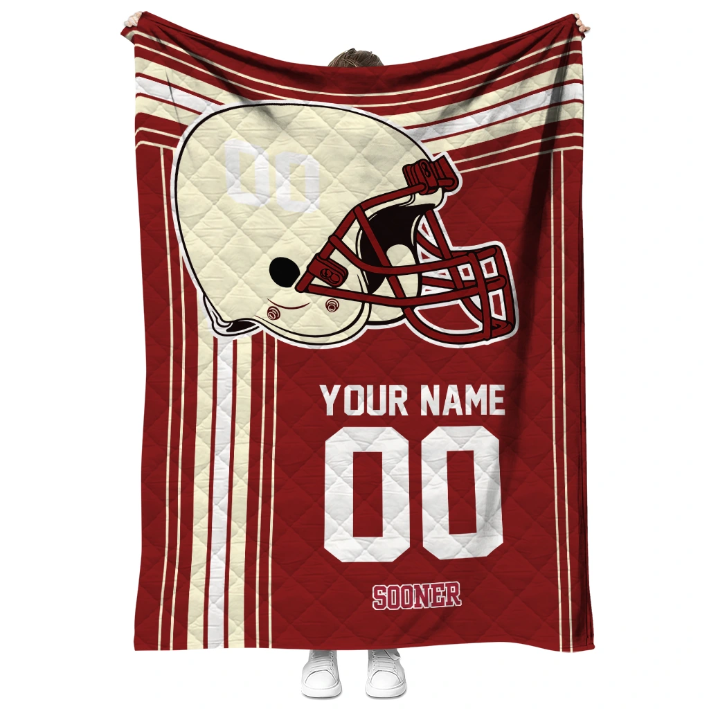 Wrap yourself in warmth and pride with the Custom Oklahoma Sooners Helmet Theme Crimson Quilt Blanket from the Oklahoma Sooners Blankets collection at Yes That Blanket. Made from 100% premium quilting-weight polyester blended with a touch of microfiber, this quilt offers a smooth, soft finish you’ll love. Choose between two quilting styles—Stipple or Diagonal—and enjoy the comfort of a cotton-filled layer inside that adds extra coziness for every season. The border is available in classic black or white, giving your design a clean, timeless edge.