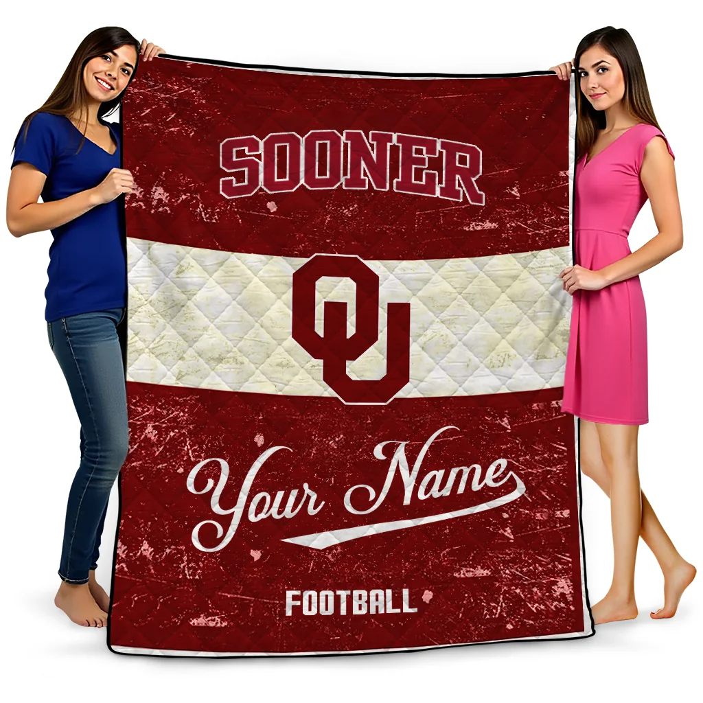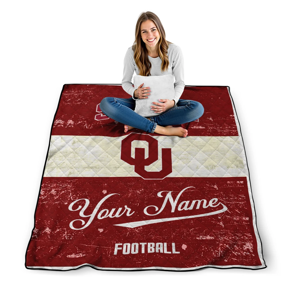 Wrap yourself in warmth and pride with the Custom Oklahoma Sooners Hibiscus Burst Crimson White Quilt Blanket from the Oklahoma Sooners Blankets collection at Yes That Blanket. Made from 100% premium quilting-weight polyester blended with a touch of microfiber, this quilt offers a smooth, soft finish you’ll love. Choose between two quilting styles—Stipple or Diagonal—and enjoy the comfort of a cotton-filled layer inside that adds extra coziness for every season. The border is available in classic black or white, giving your design a clean, timeless edge.