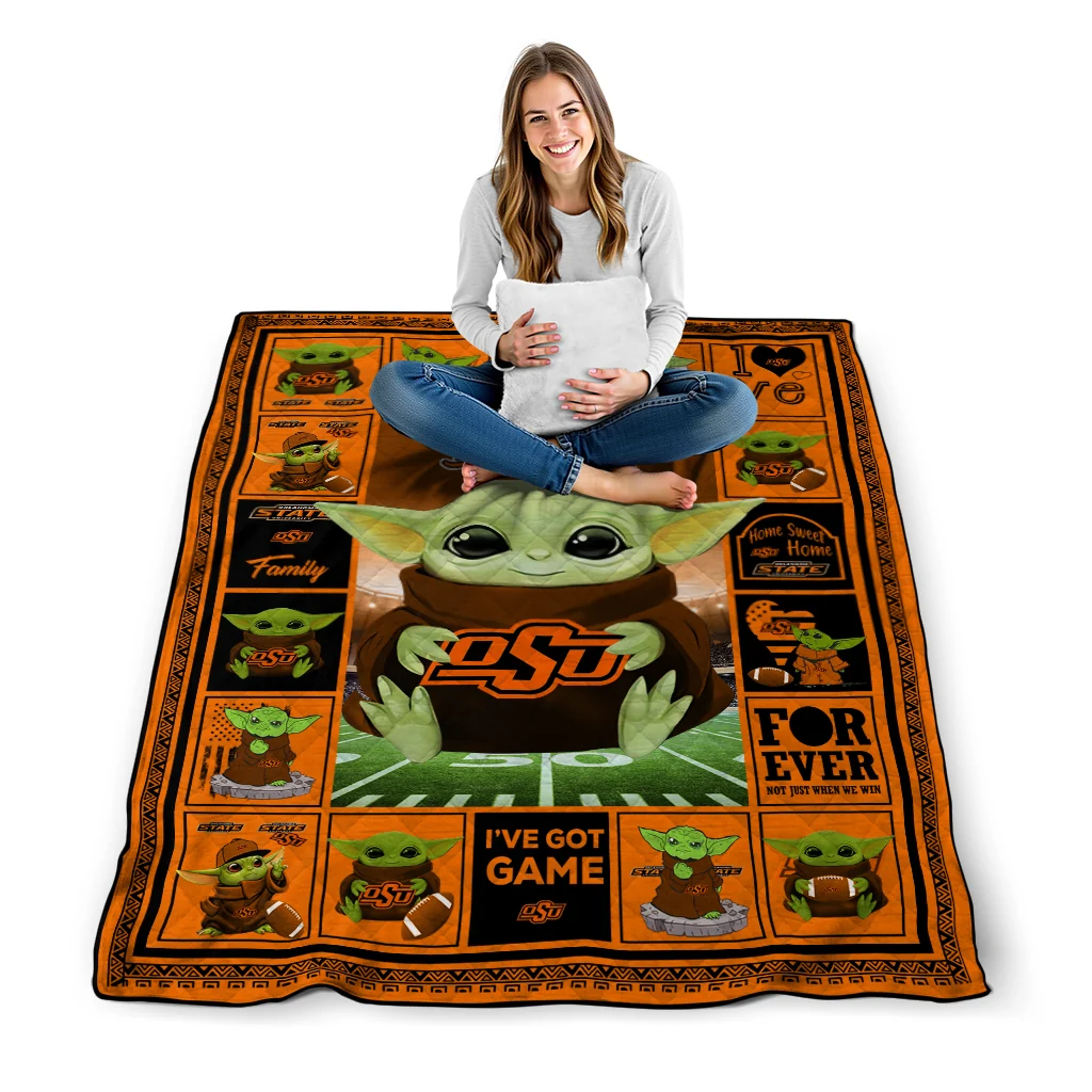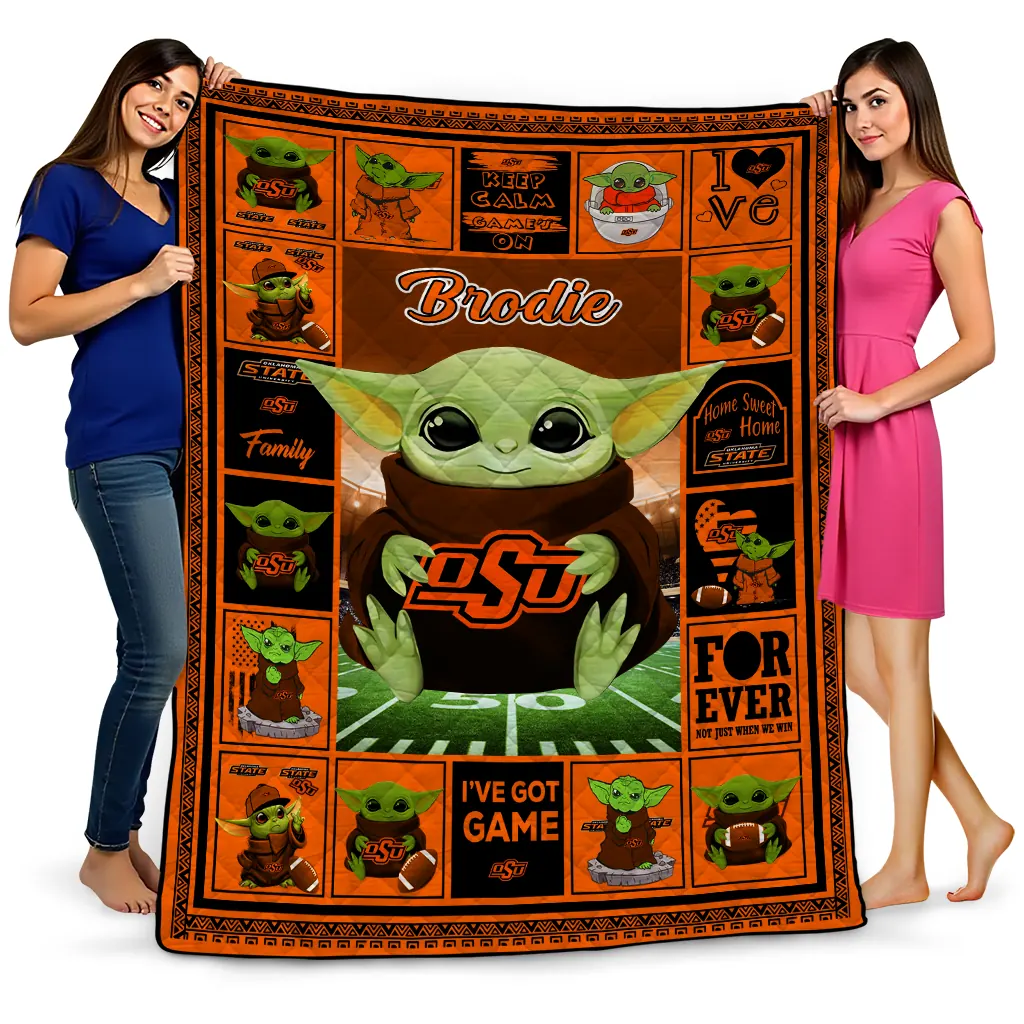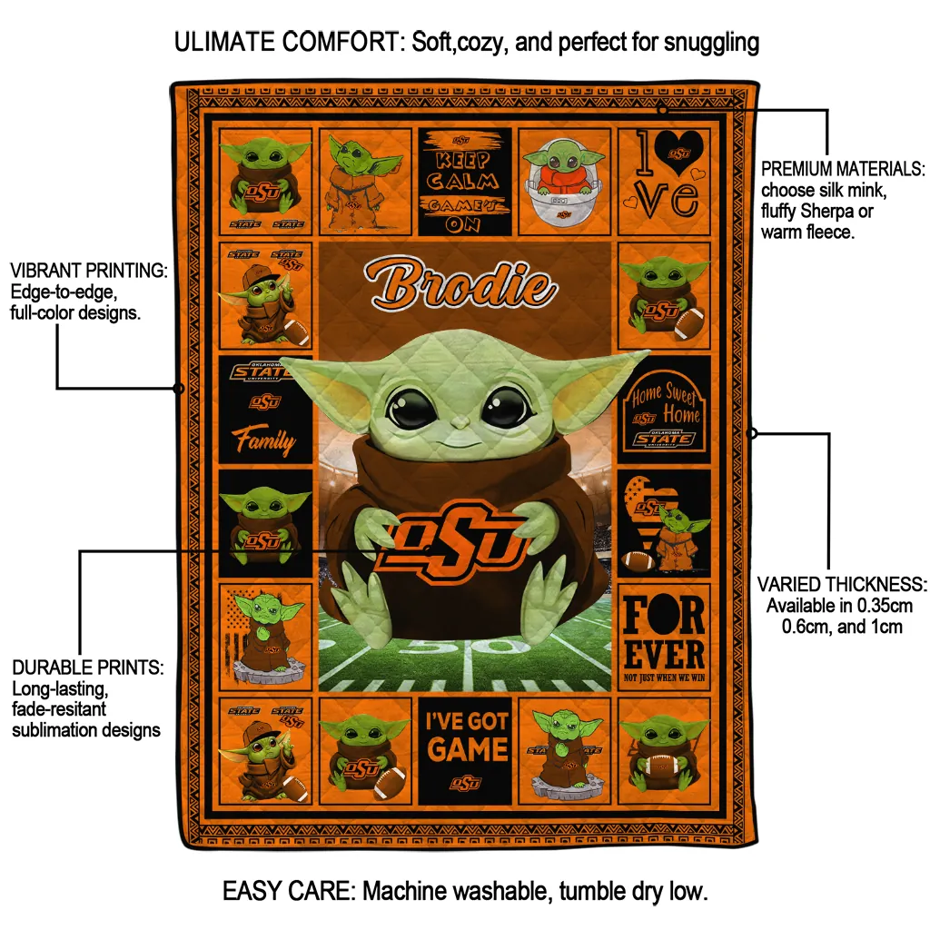 Custom Oklahoma State Cowboys Yody Baby Pattern Orange Quilt Blanket