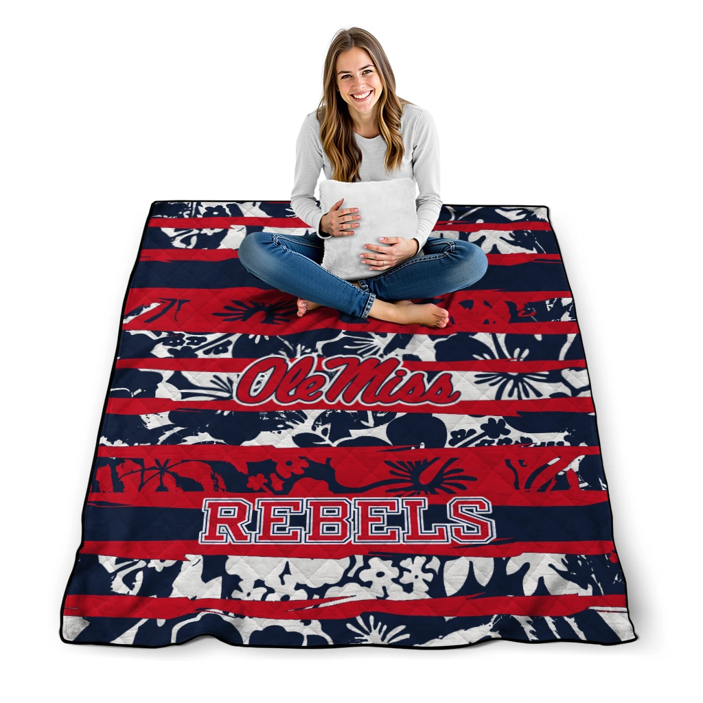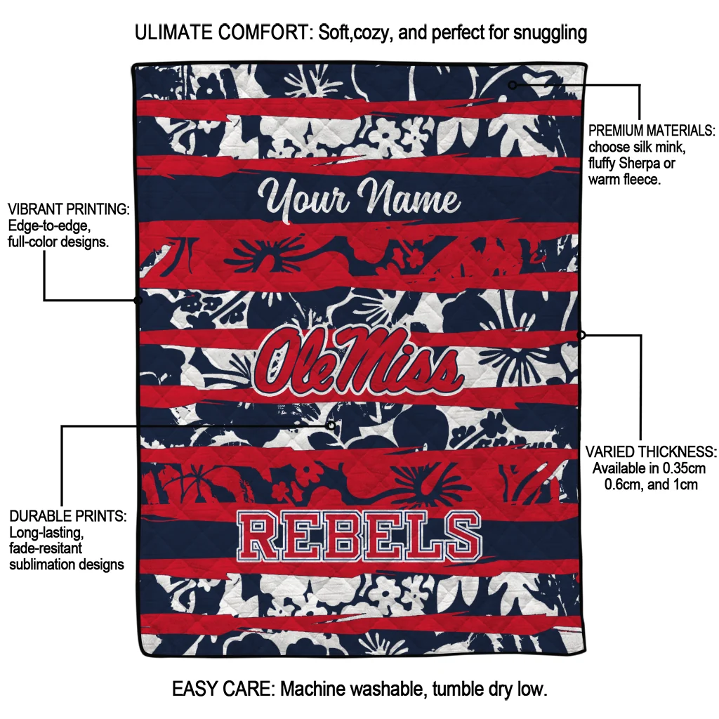 Custom Ole Miss Rebels Layered Florals Red White Quilt Blanket