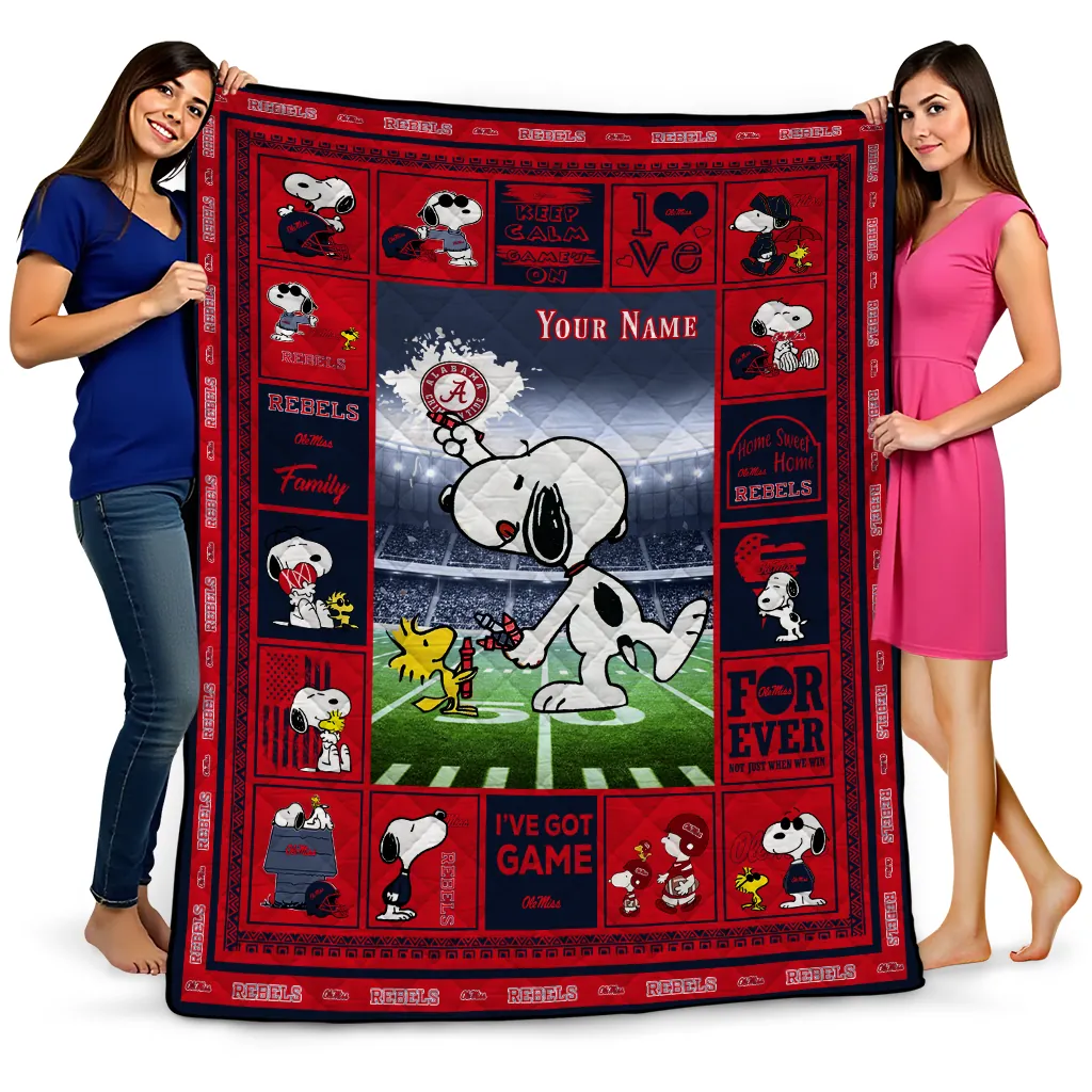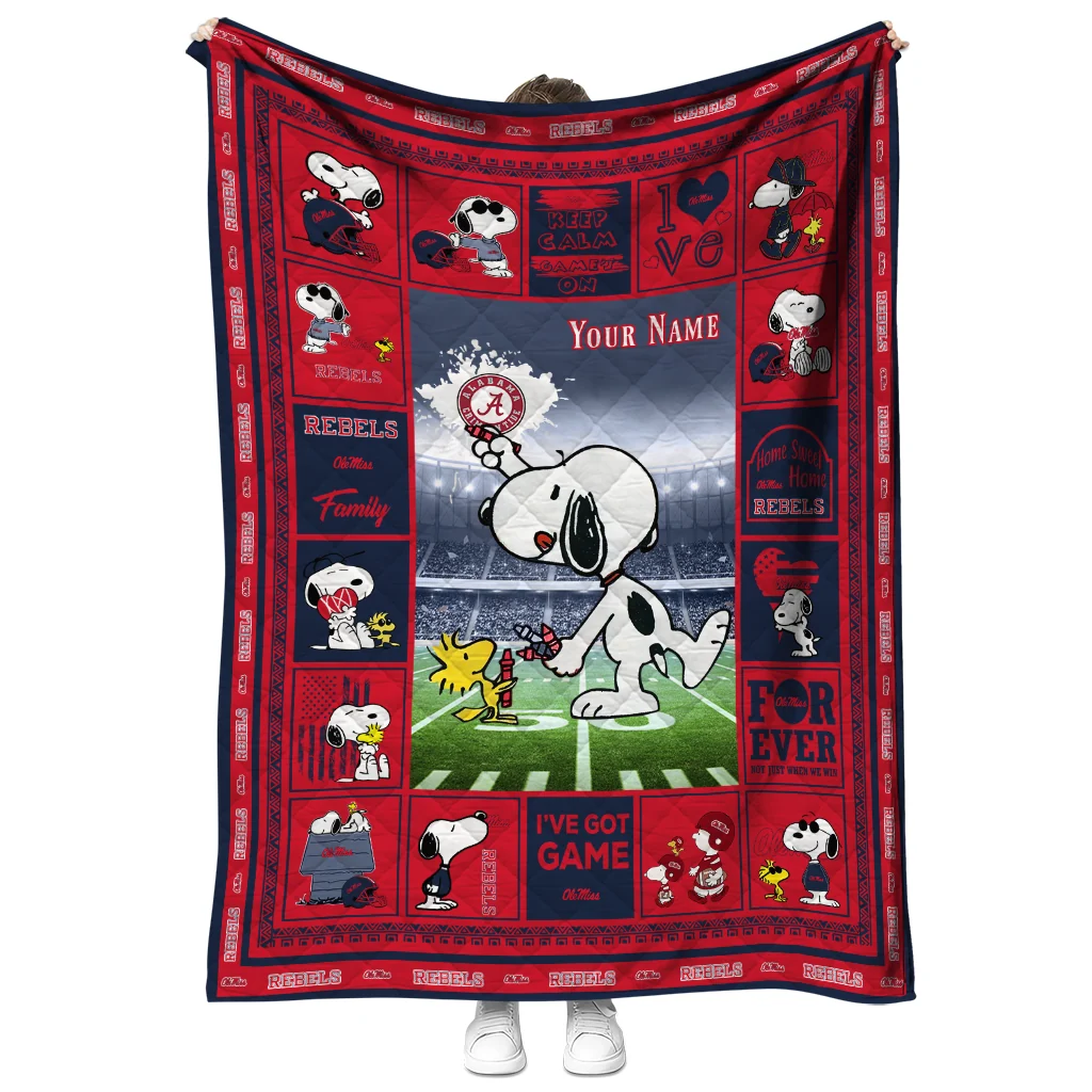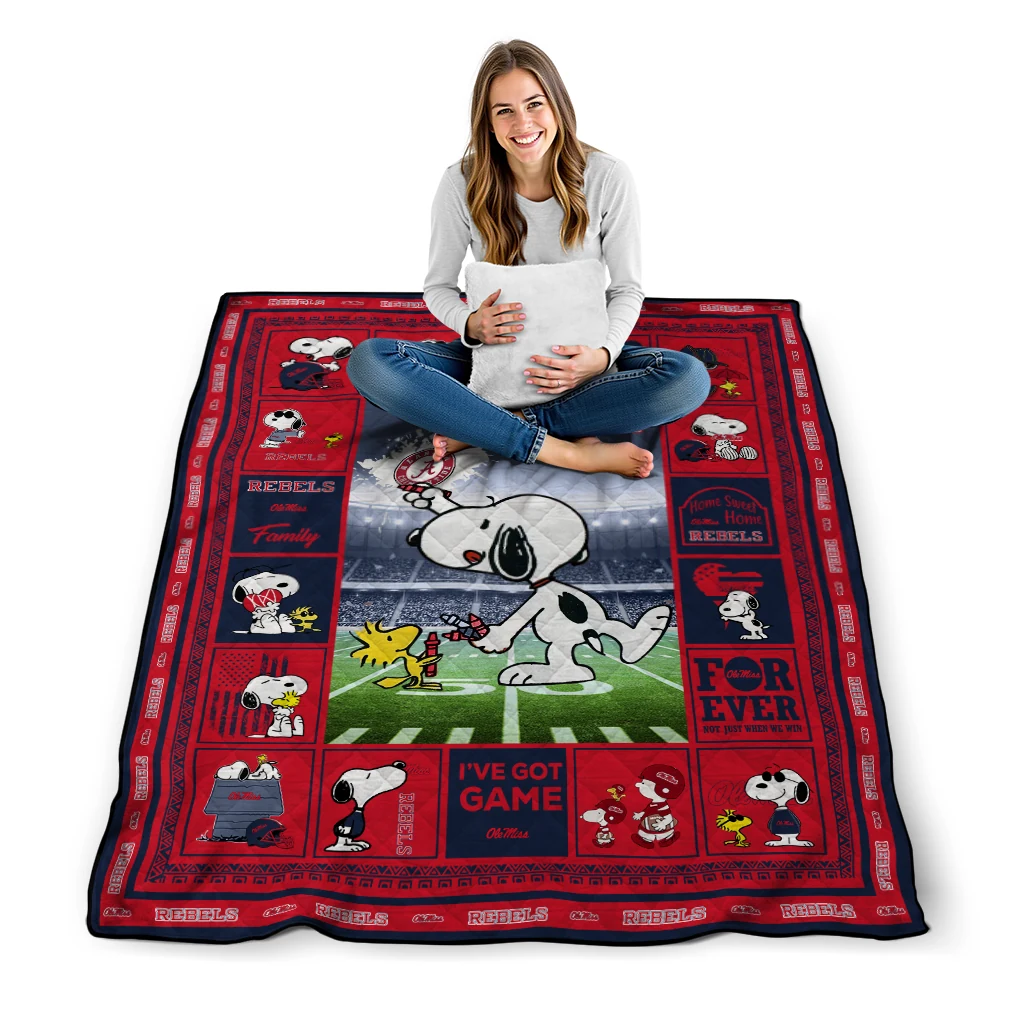 Custom Ole Miss Rebels Snoopy Coach Red Quilt Blanket